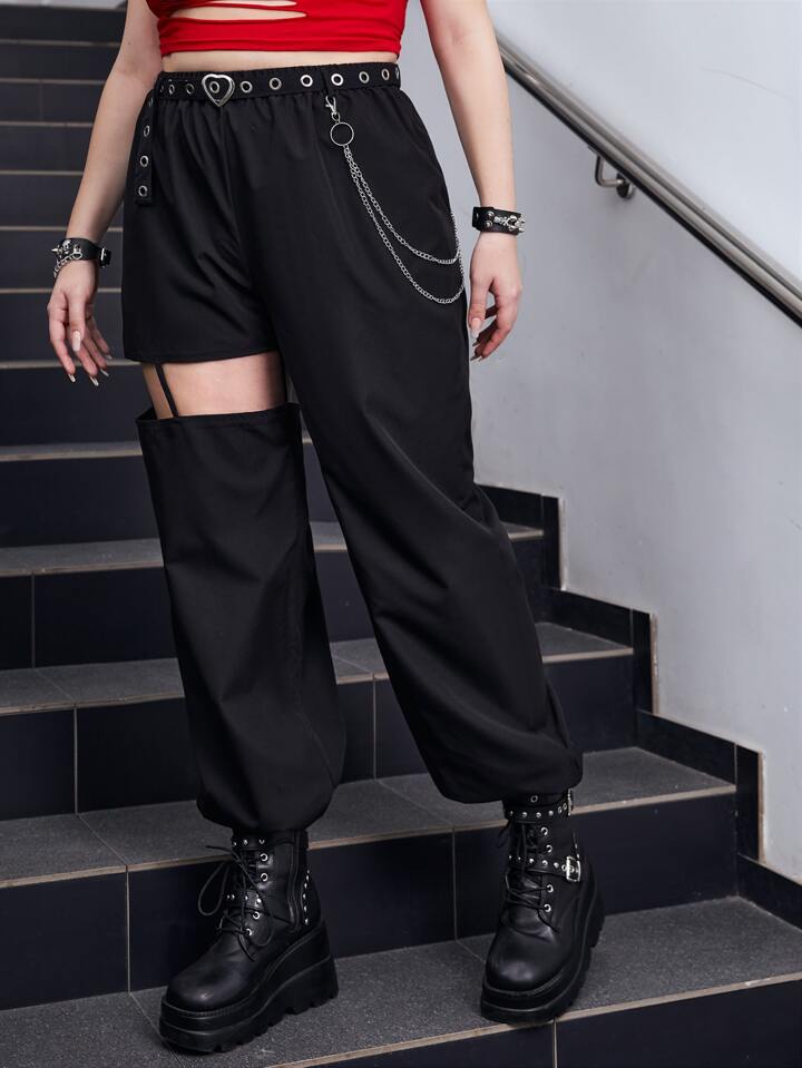 Grunge Punk Plus Cut Out Chain Detail Pants