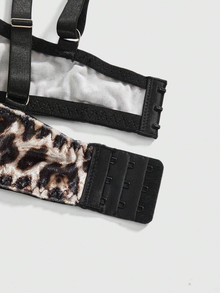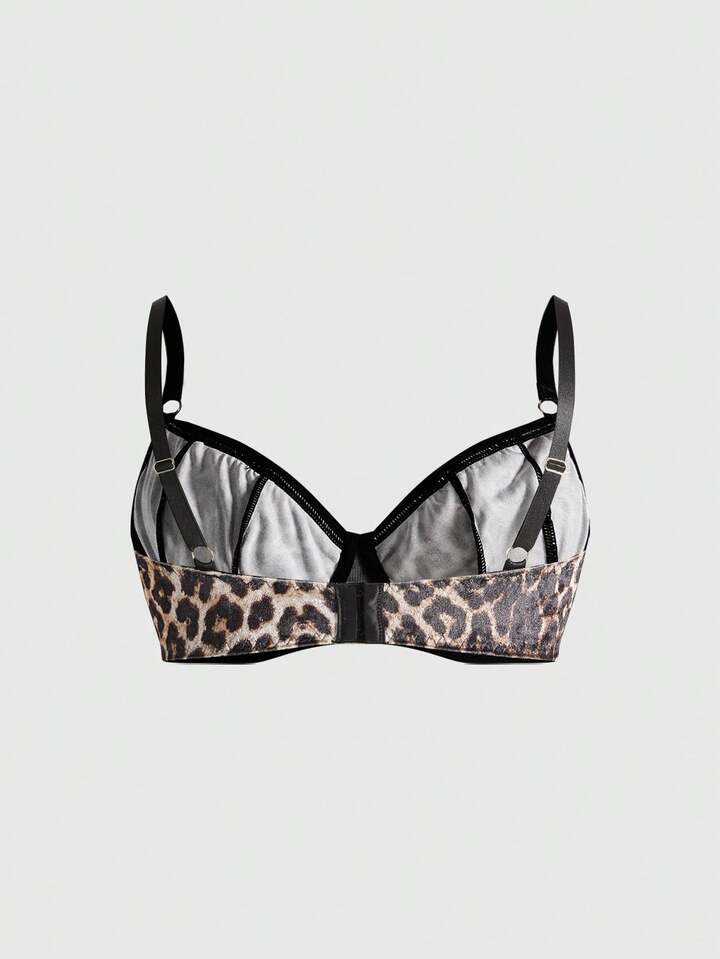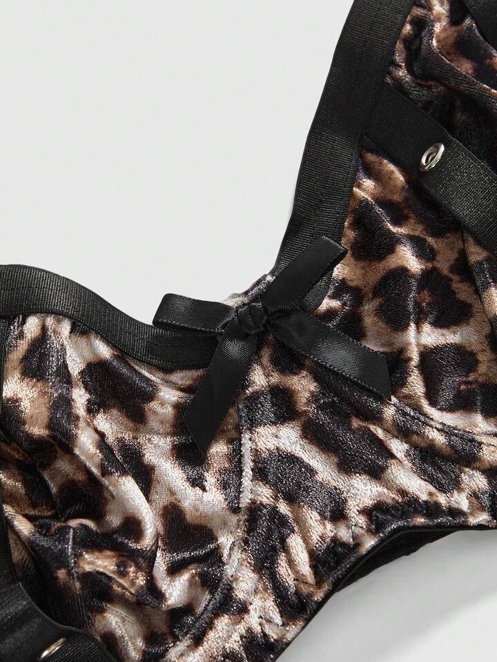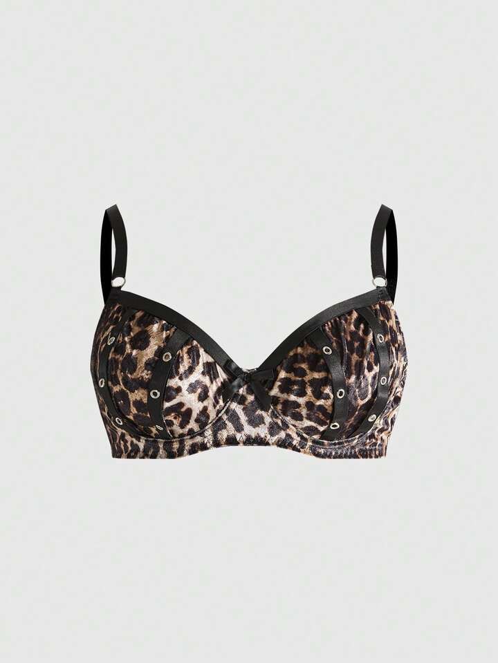 Grunge Punk Plus Size Dark Punk Leopard Print Eyelet Ribbon Bow Bralette & Wireless Bra