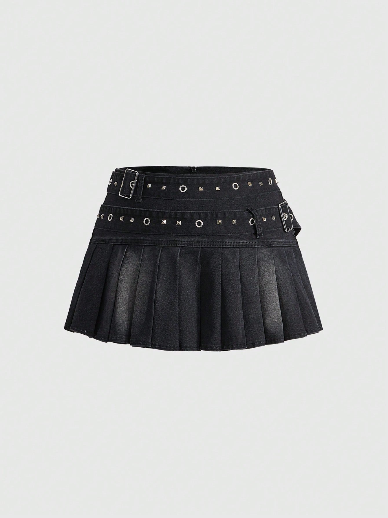 Grunge Punk Plus Size Kpop Punk Rock Sexy Cute Versatile Washed Pleated Denim Mini Skirt For Women