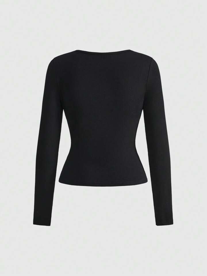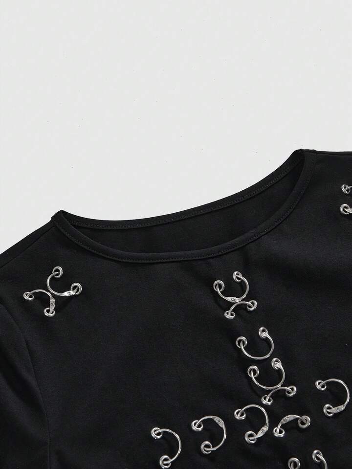 Grunge Punk Plus Size Punk Metal Grommet Design Fitted Long Sleeve T-Shirt