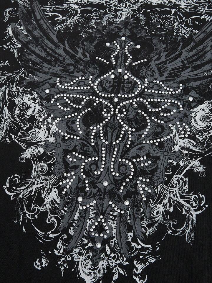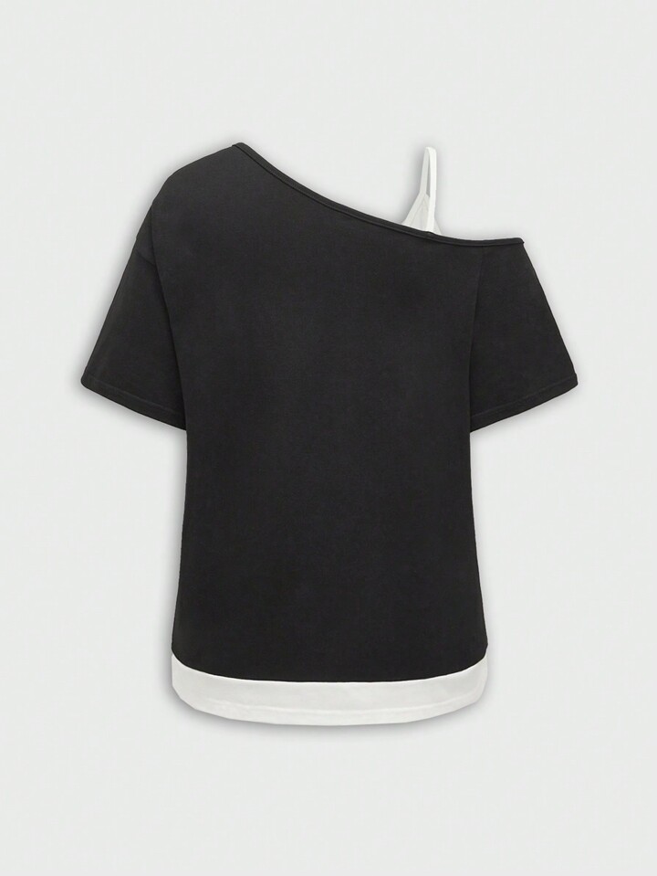 Grunge Punk Plus Size Summer Grunge Style Music Festival Printed Rhinestone Asymmetrical Neck T-Shirt, School