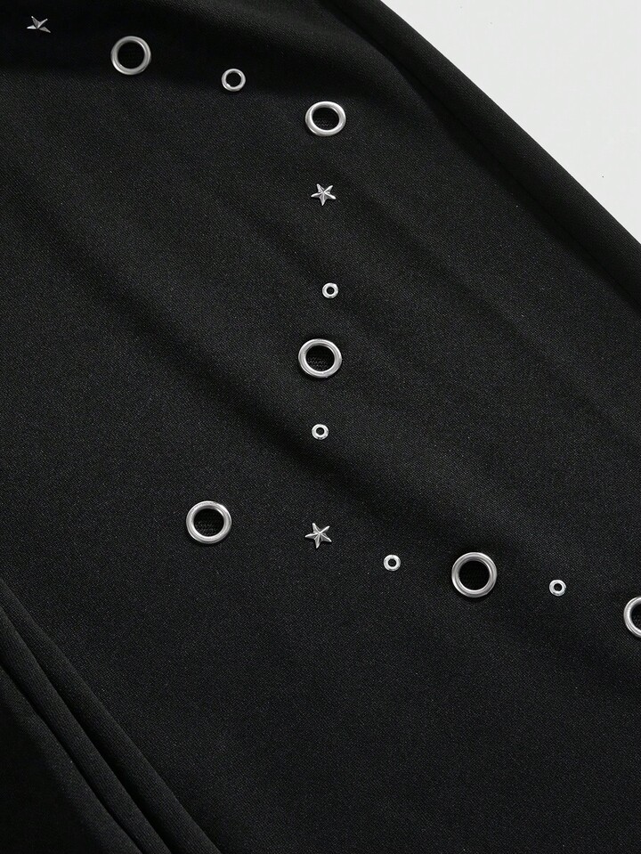 Grunge Punk Punk Style Black Metal Eyelet Wide Leg Sweatpants For Women