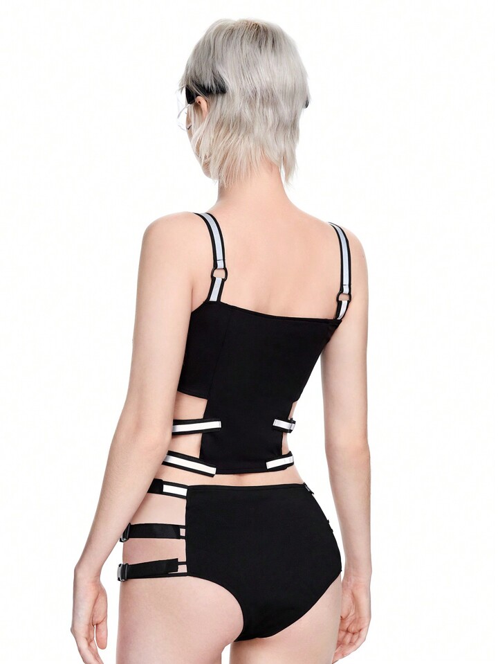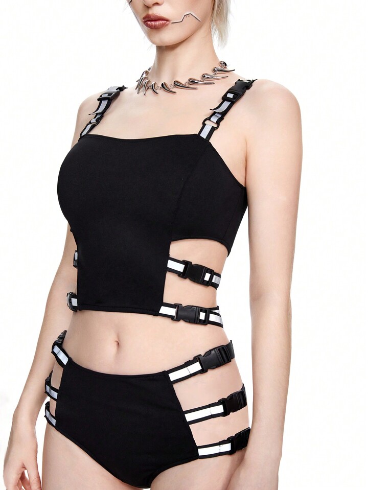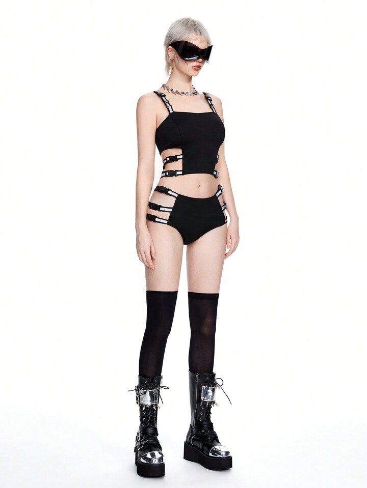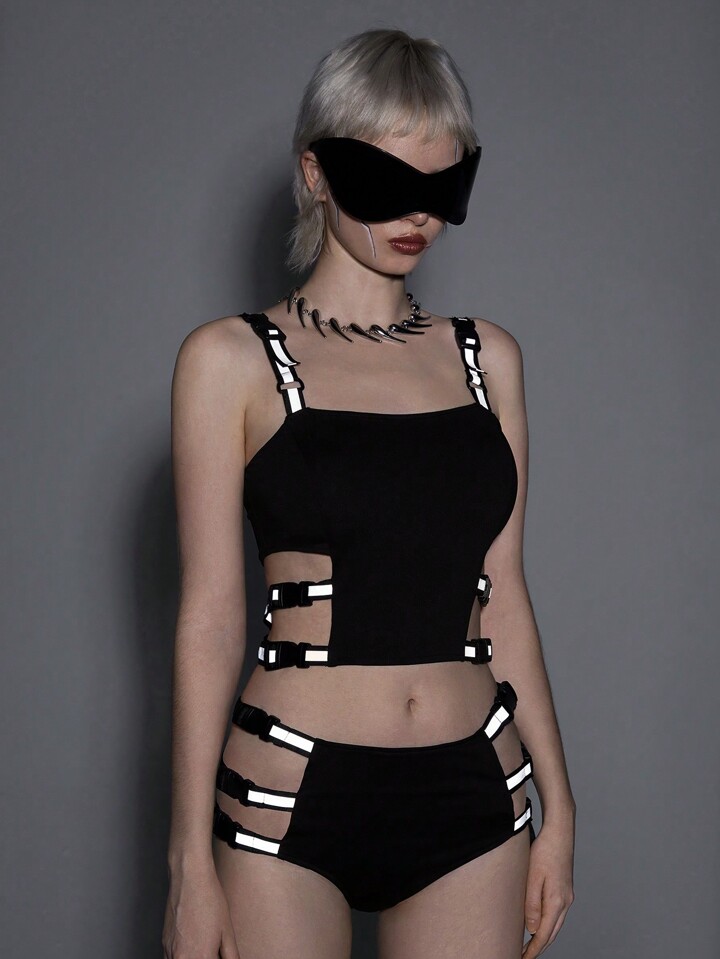 Grunge Punk Reflective Hollow-Out Design Crop Tank Top For Women