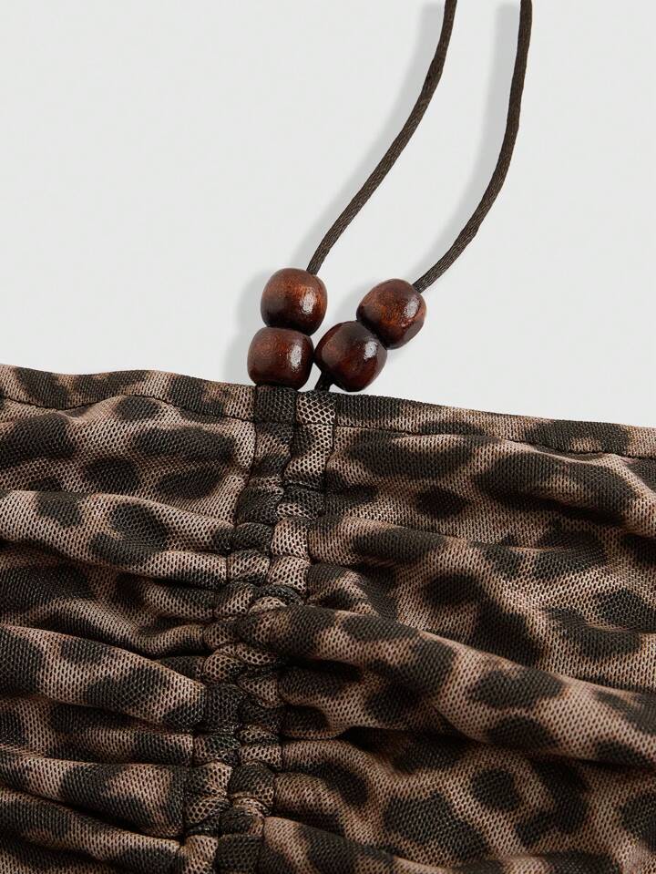 Grunge Punk Retro Y2K Gyaru Harajuku Sexy Mesh Leopard Print Halter Top, School