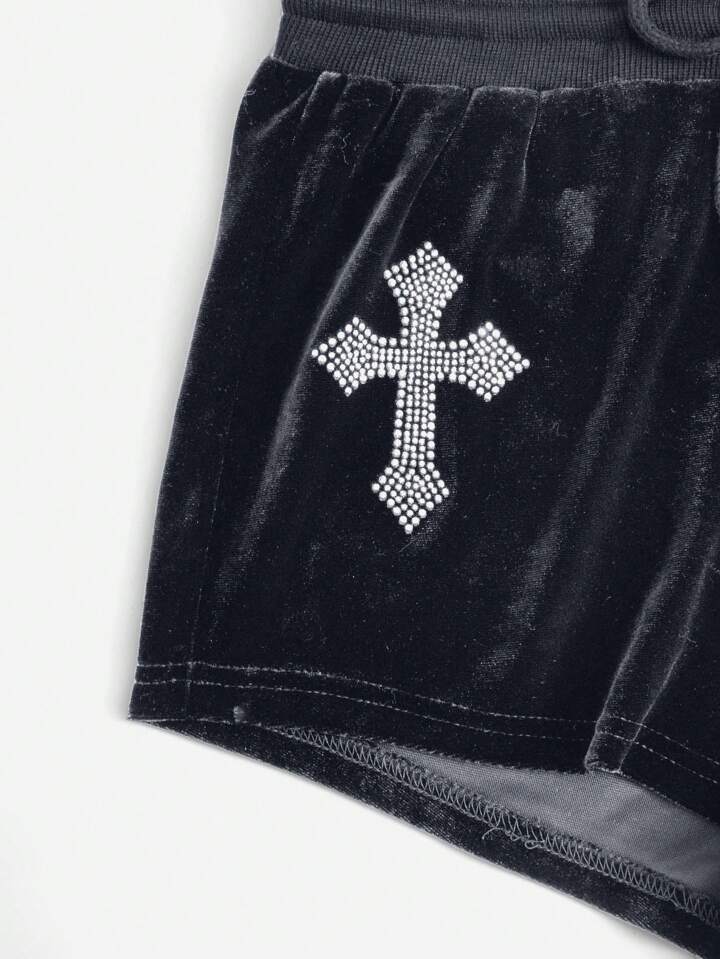 Grunge Punk Rhinestone~ Letter Pattern Decor Drawstring Waist Shorts
