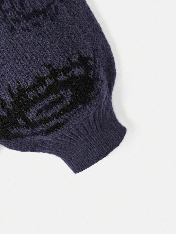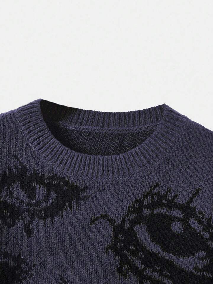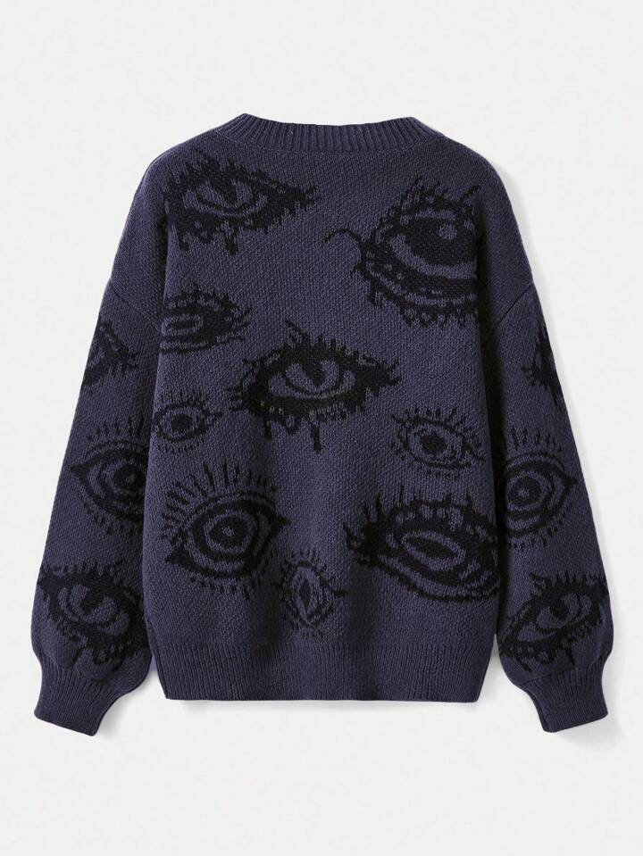 Grunge Punk Round Neck Long Sleeve Simple Eye Pattern Pullover Sweater, Casual Daily Wear