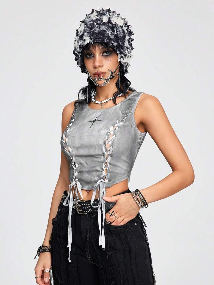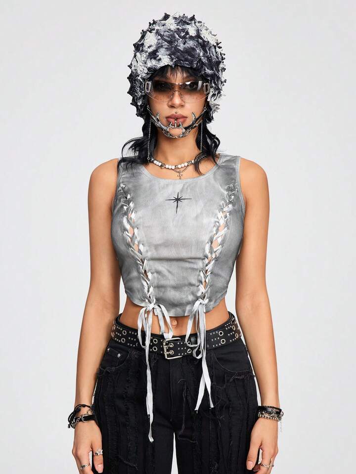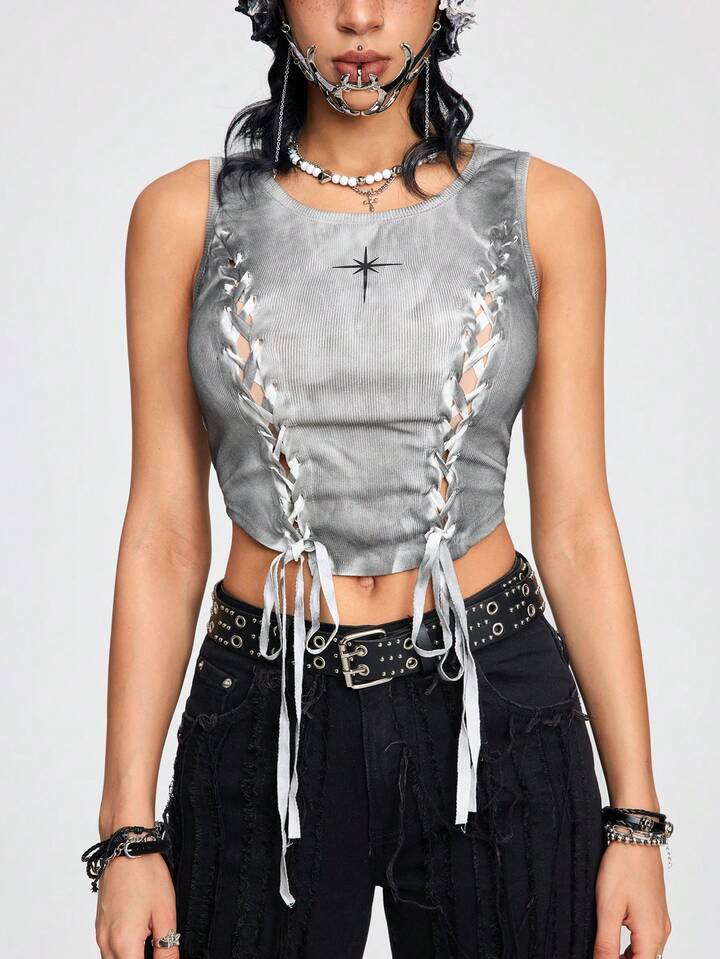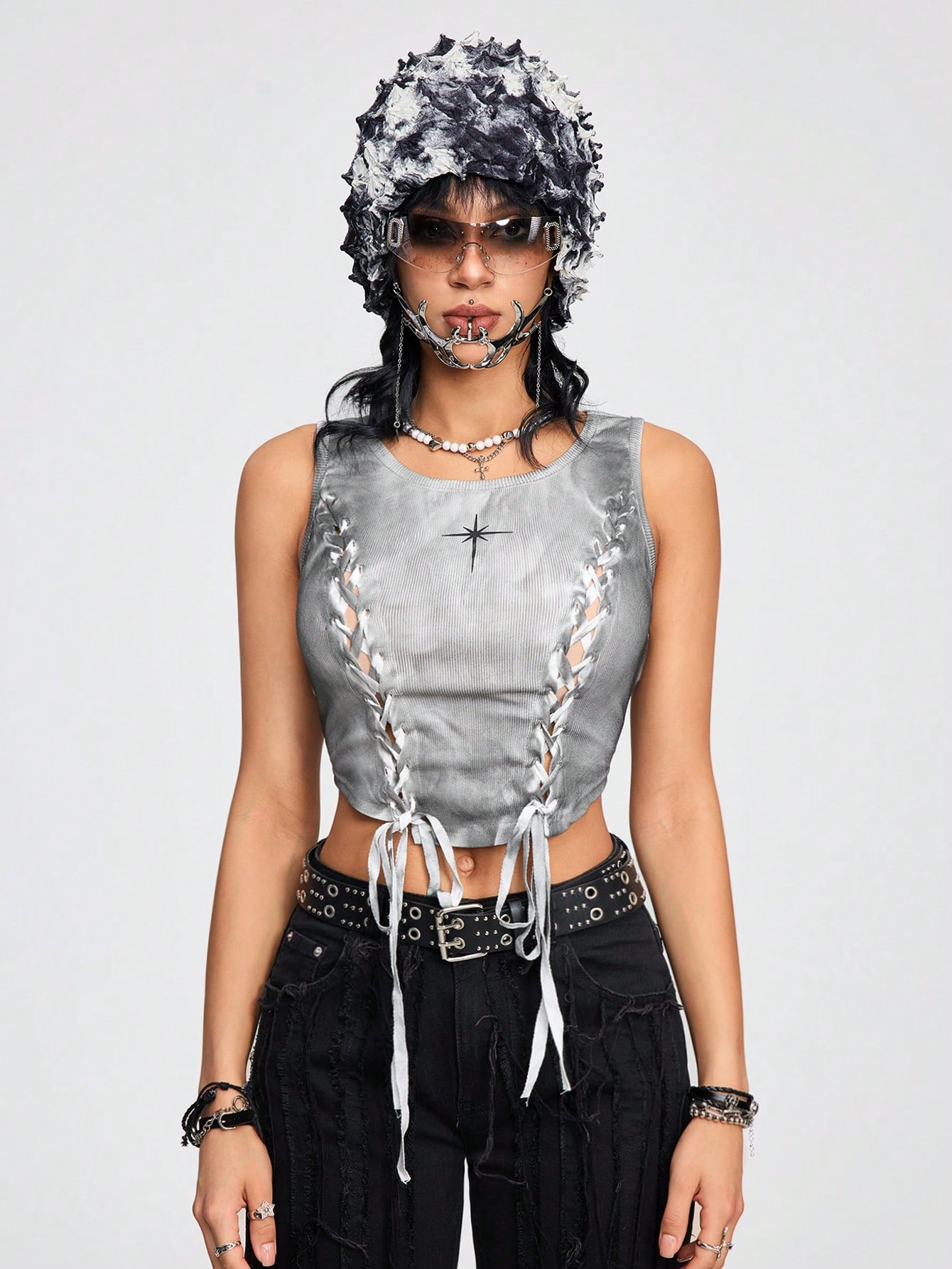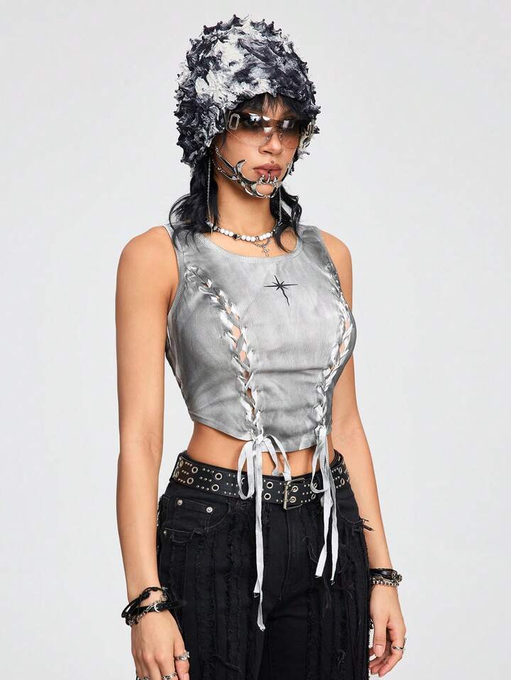 Grunge Punk Sexy Casual Tie-Dye Women's Tank Top With Asymmetrical Hem And Distressed Effect
