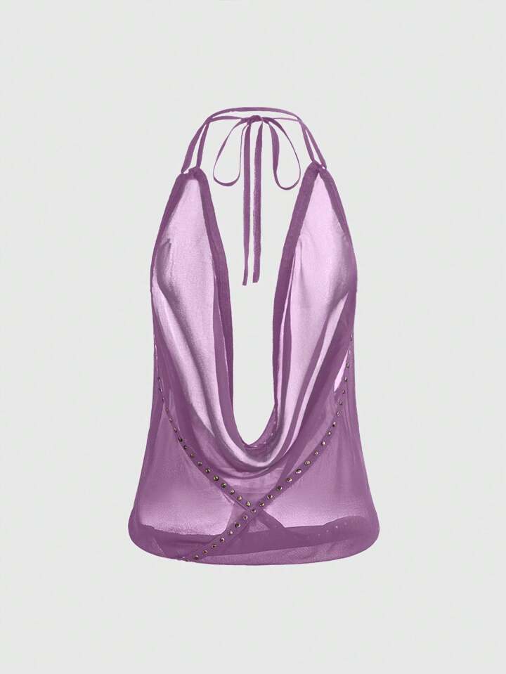 Grunge Punk Sexy Deep Draped Neck Retro Halter Backless Cami Top