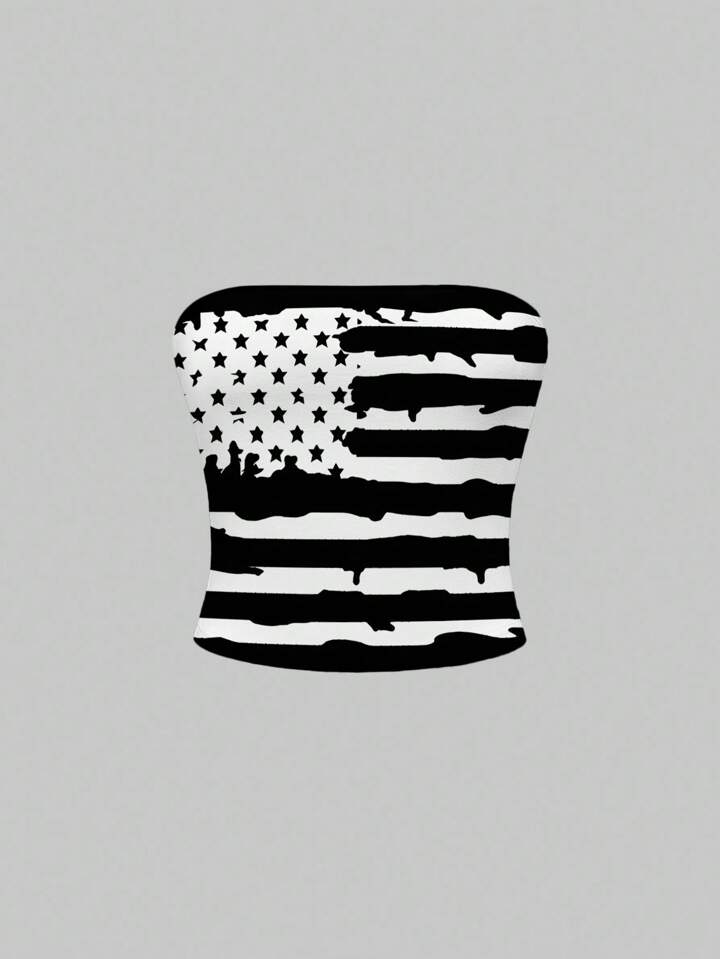 Grunge Punk Sexy Vintage USA Flag Color Block Cropped Camisole Top For Women