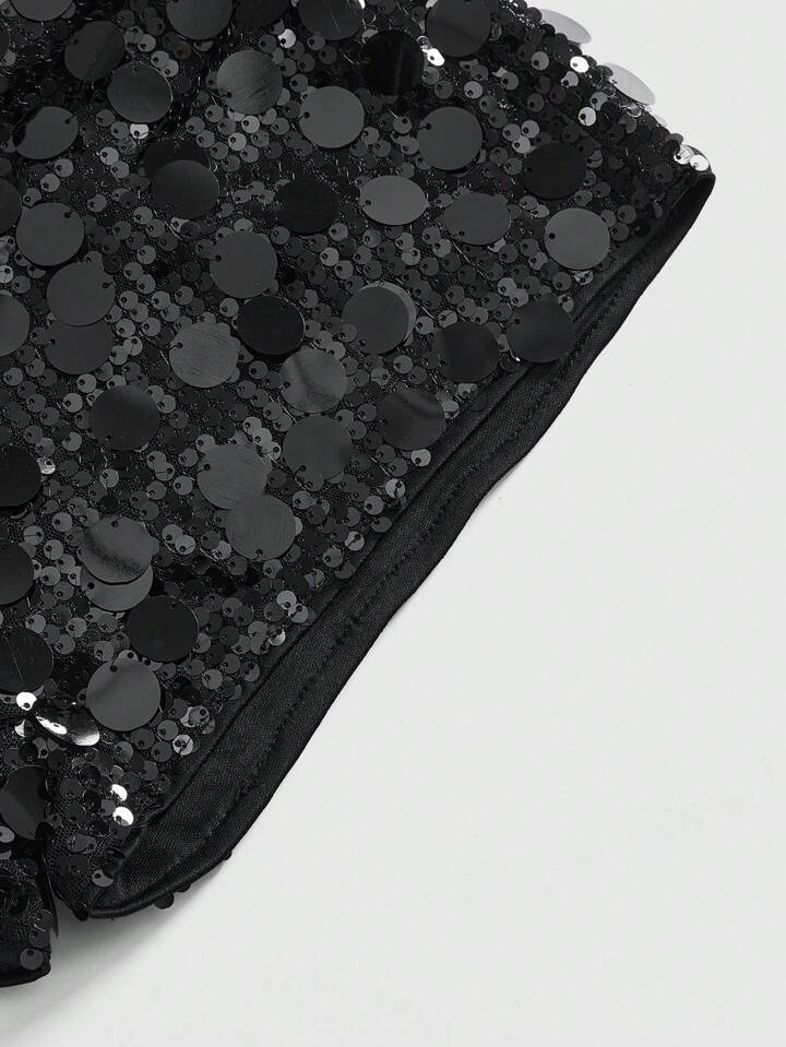Grunge Punk Shiny Sequin Embellished Elastic Waist Plus Size Black Shorts, Sexy Low Waist For Summer Beach, Graduation, Easter, Concert, Nashville Vacation, Elegant Tropical Music Festival Party