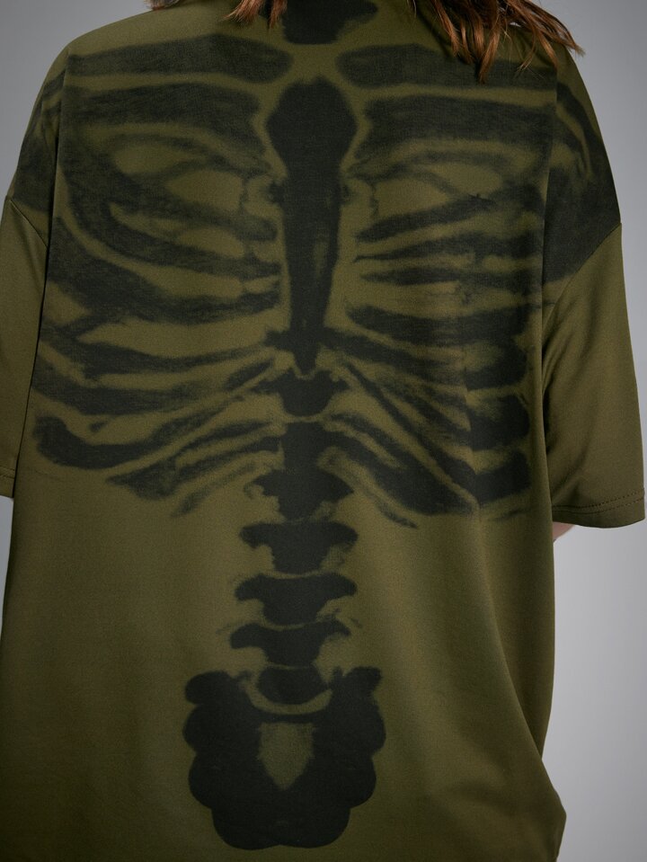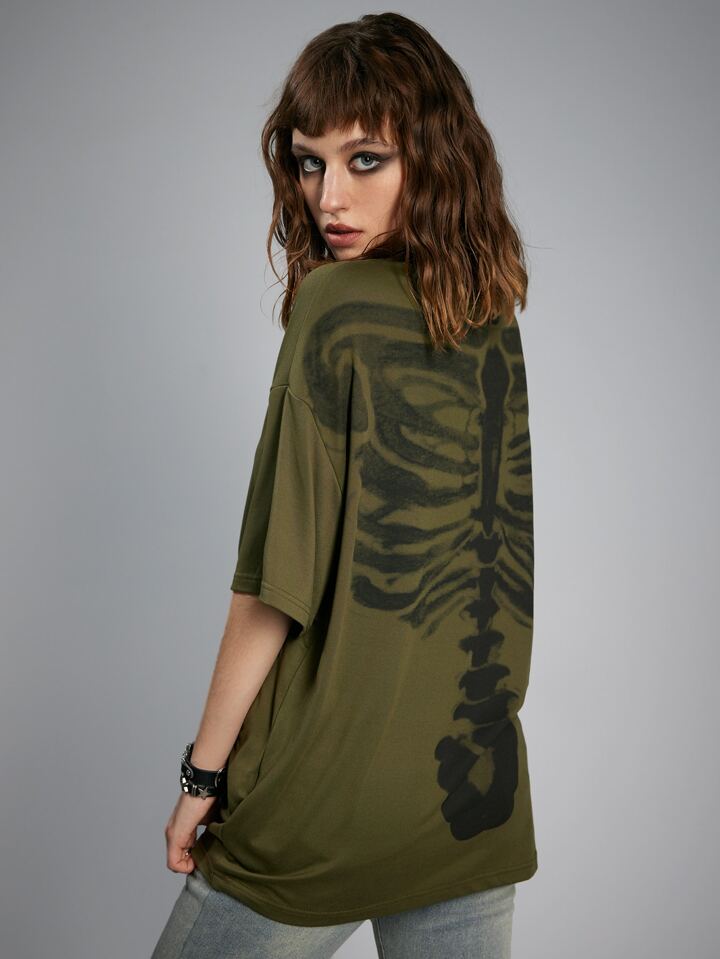 Grunge Punk Skeleton Print Drop Shoulder Tee, School