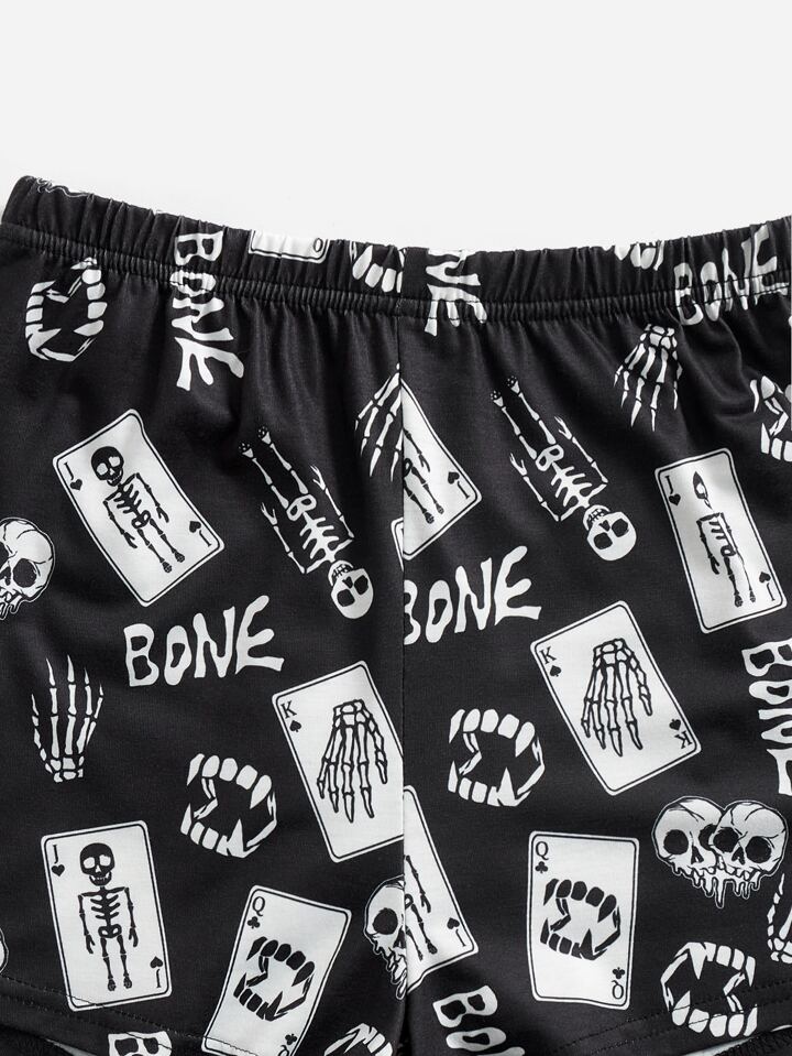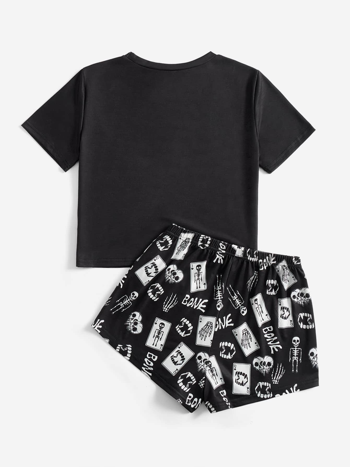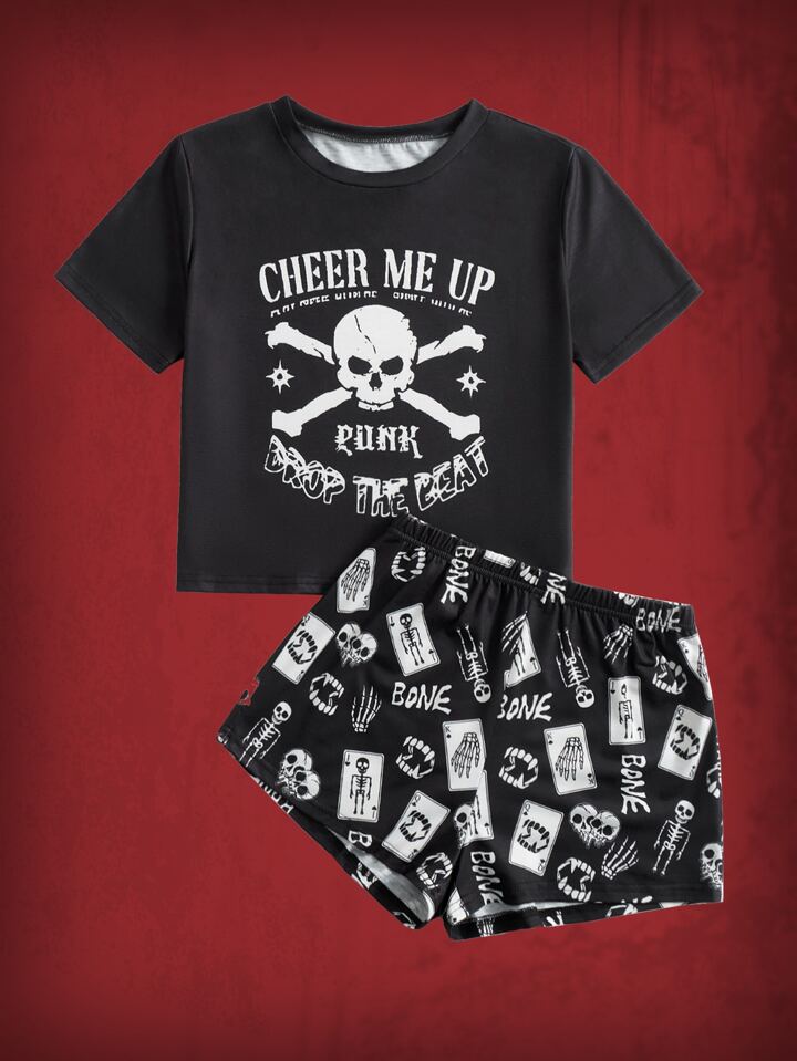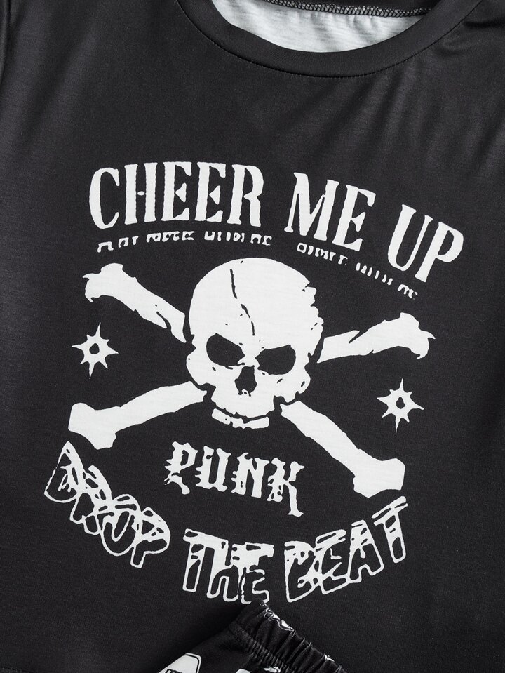 Grunge Punk Skull & Letter Graphic PJ Set