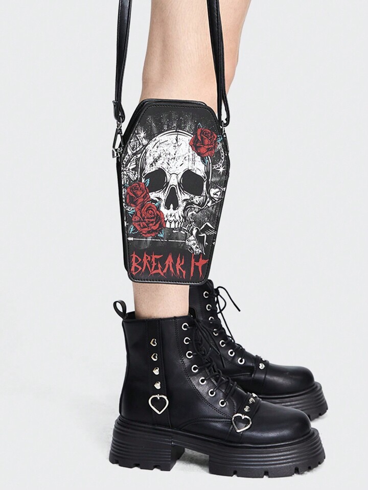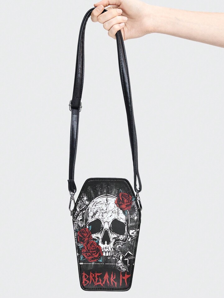Grunge Punk Skull Printed Coffin Shaped Shoulder Crossbody Bag