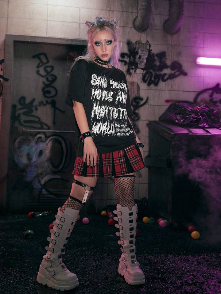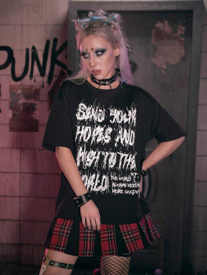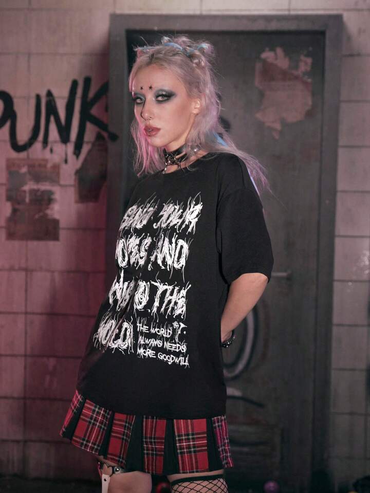 Grunge Punk Slogan Graphic Drop Shoulder Tee