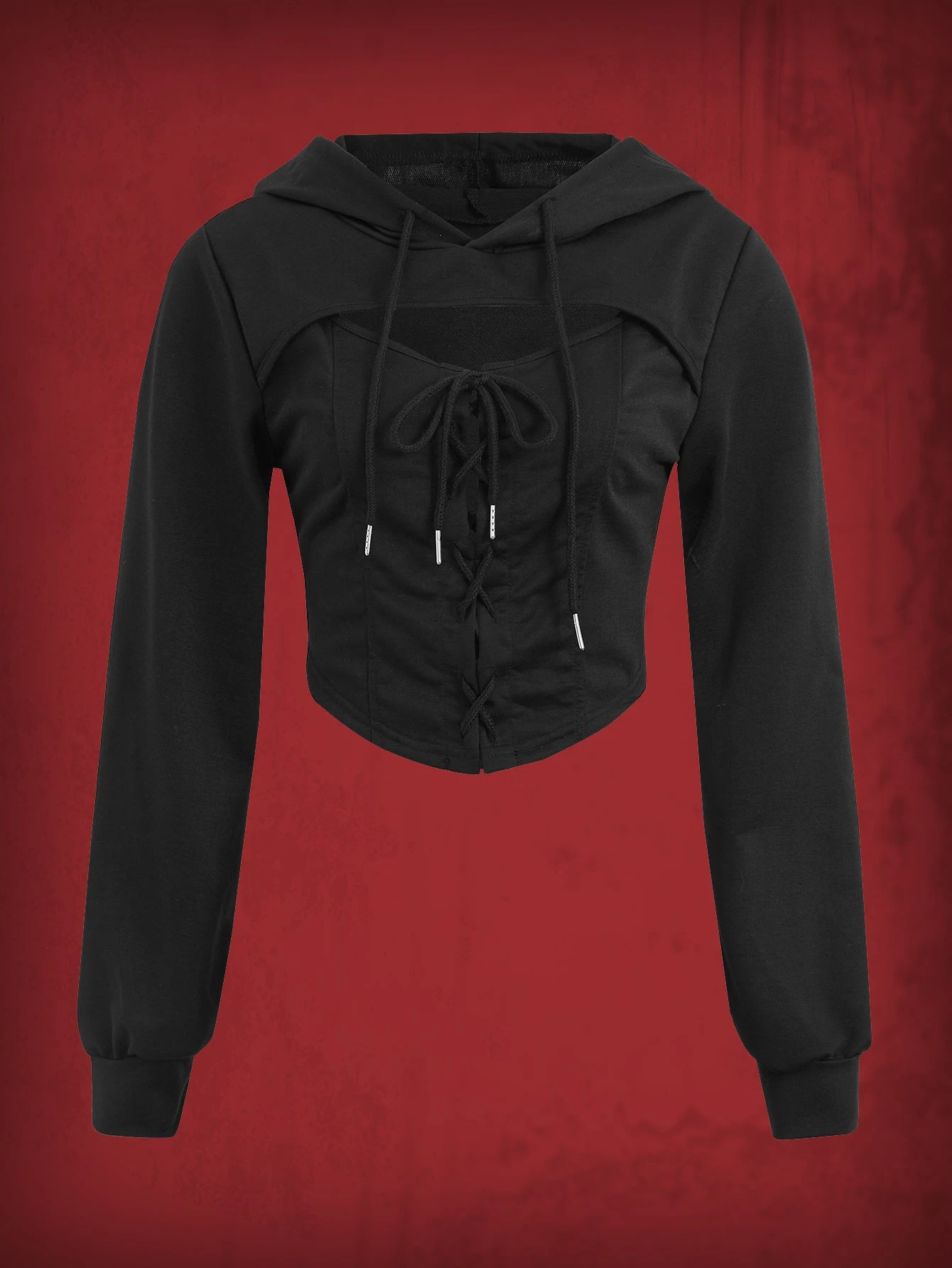 Grunge Punk Solid Drawstring Cut Out Crop Hoodie