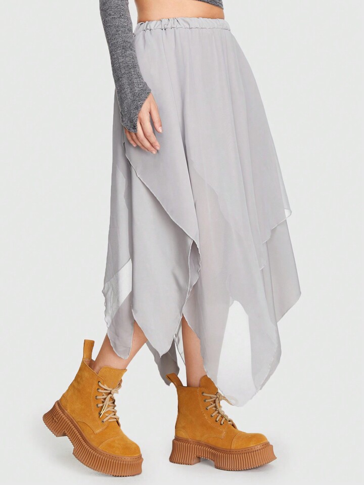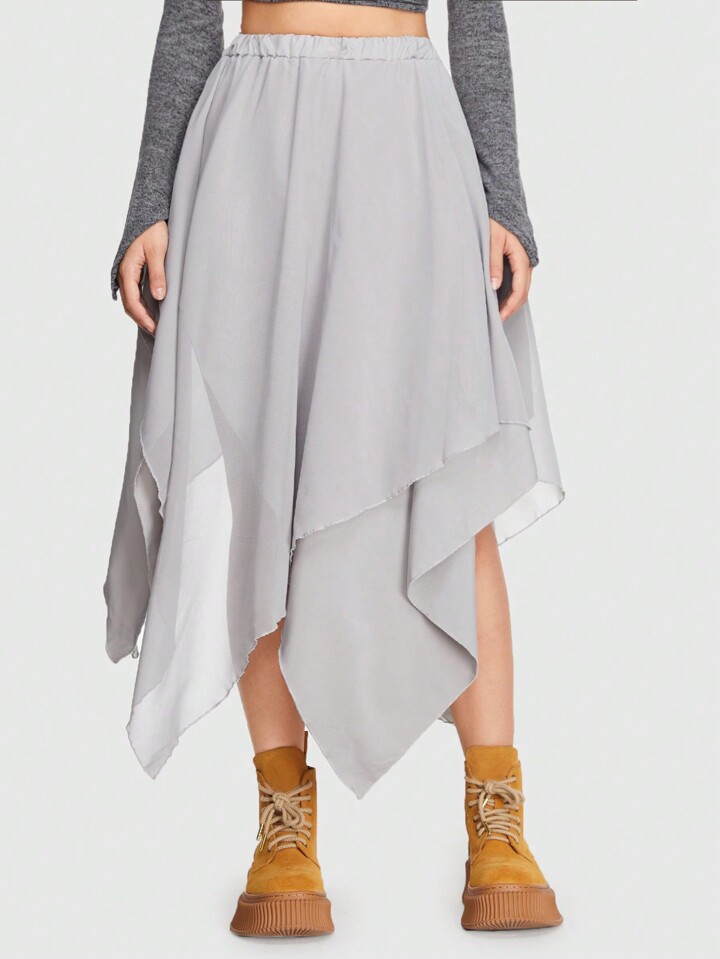 Grunge Punk Solid Hanky Hem Skirt