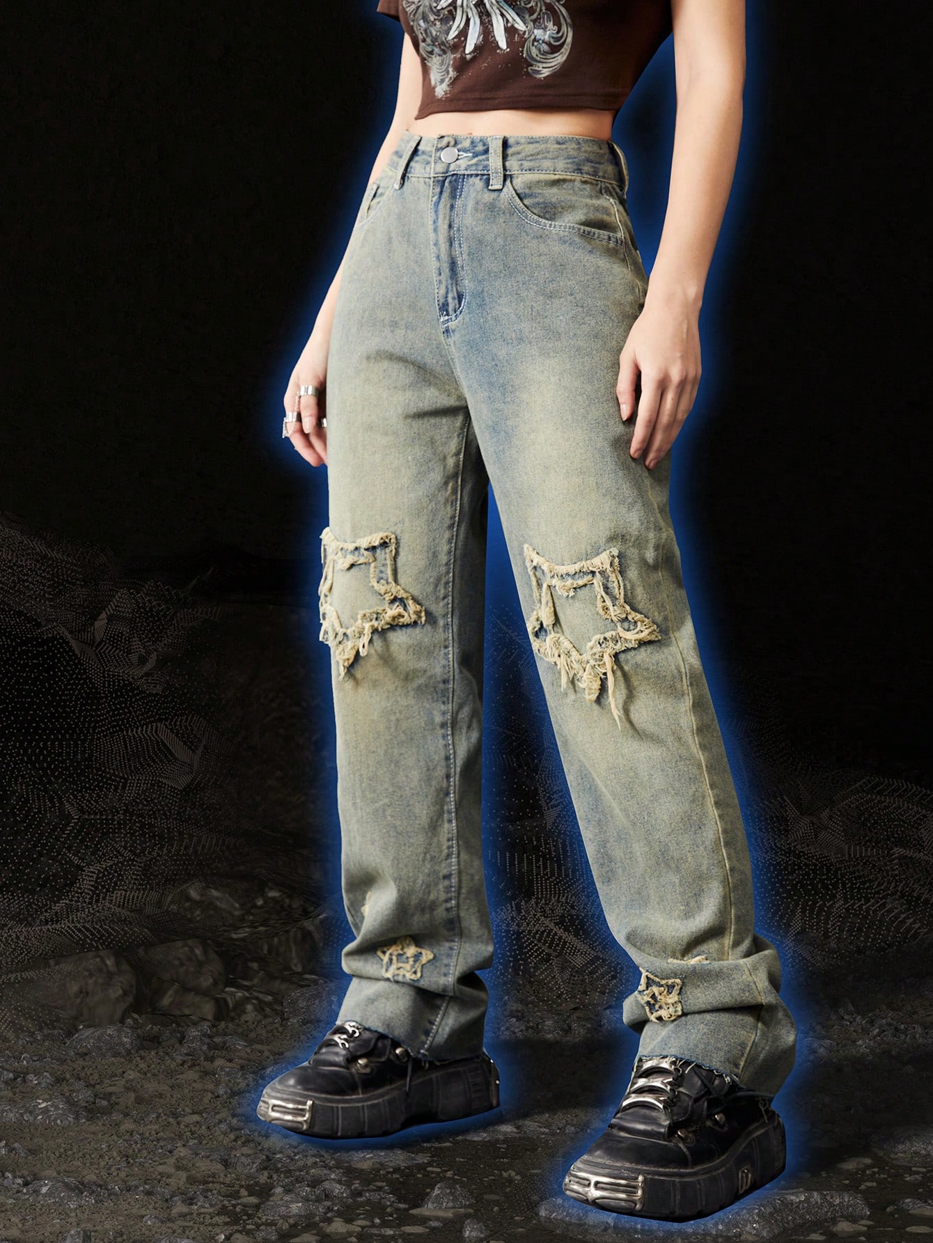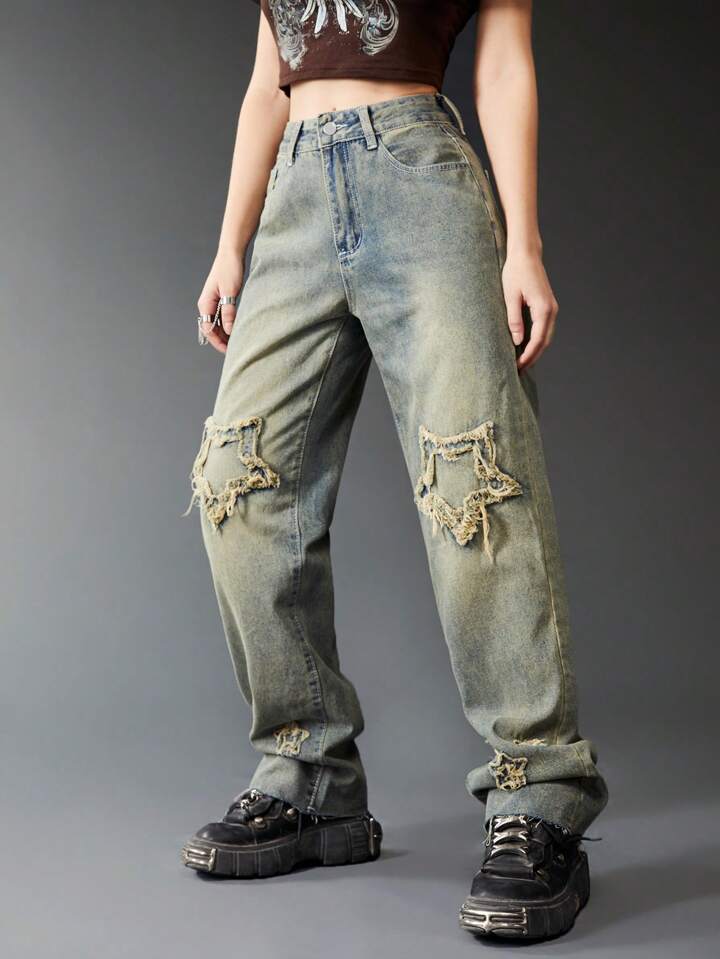 Grunge Punk Star Pattern Straight Leg Jeans