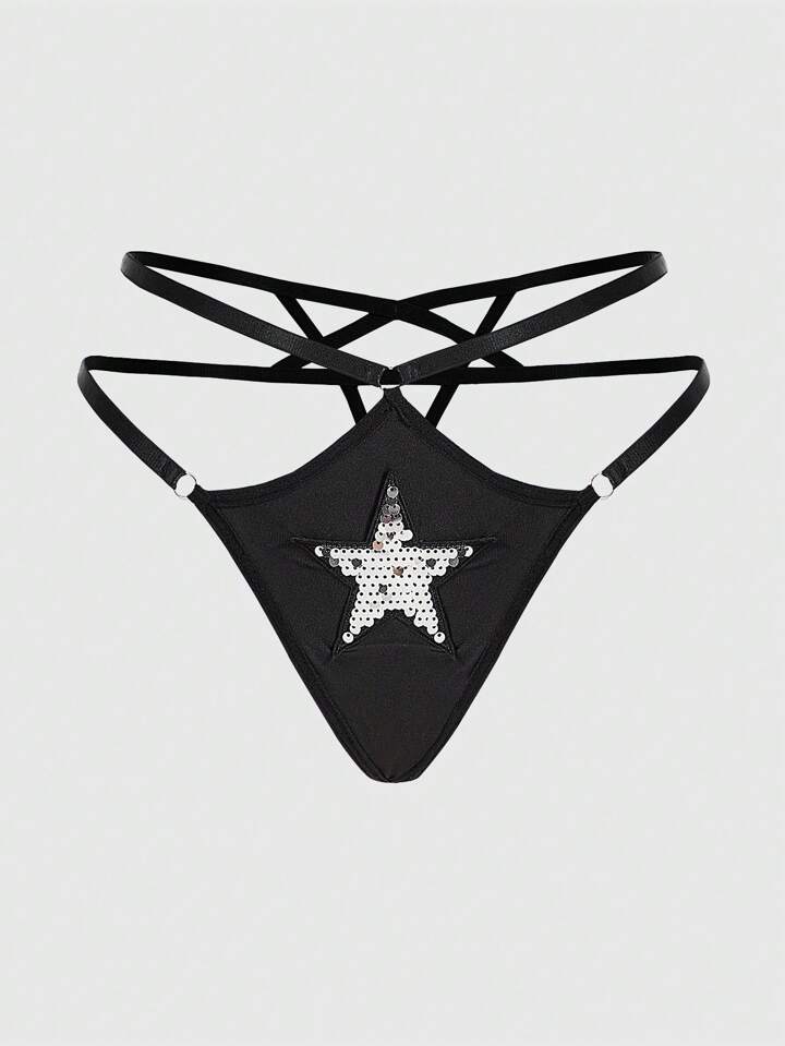 Grunge Punk Star Shaped Glitter Sequin Thong