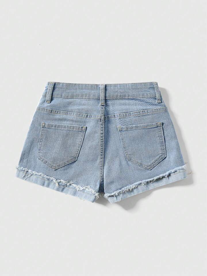 Grunge Punk Streetwear Casual Women Sexy Slim Fit Washed Denim Shorts With Frayed Hem, School