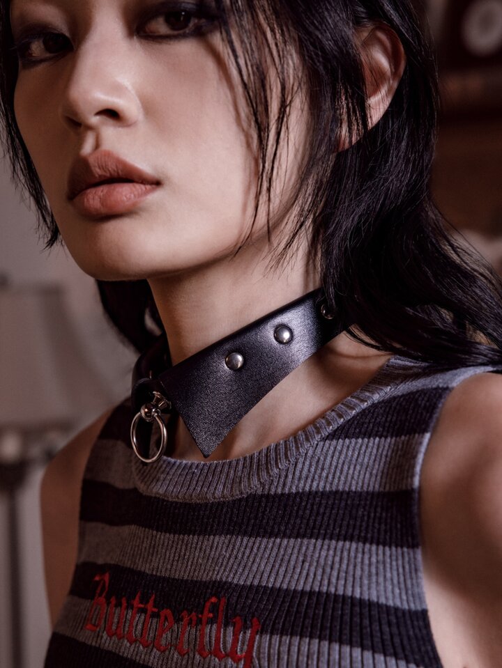 Grunge Punk Studded Decor Ring Charm Choker