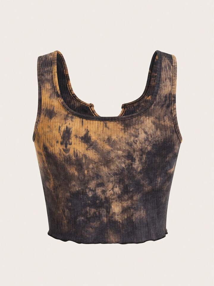 Grunge Punk Tie Dye Cross Print Notched Neck Tank Top