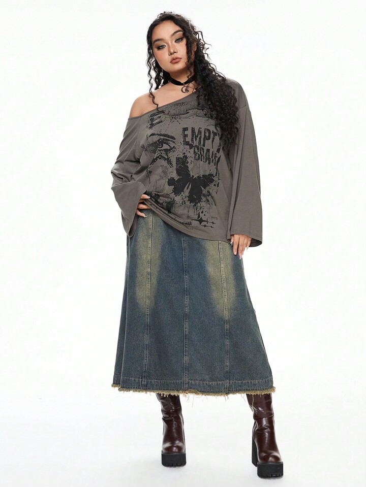 Grunge Punk Vintage Washed Punk Rock Style Casual All-Match Plus Size Denim Mini Skirt
