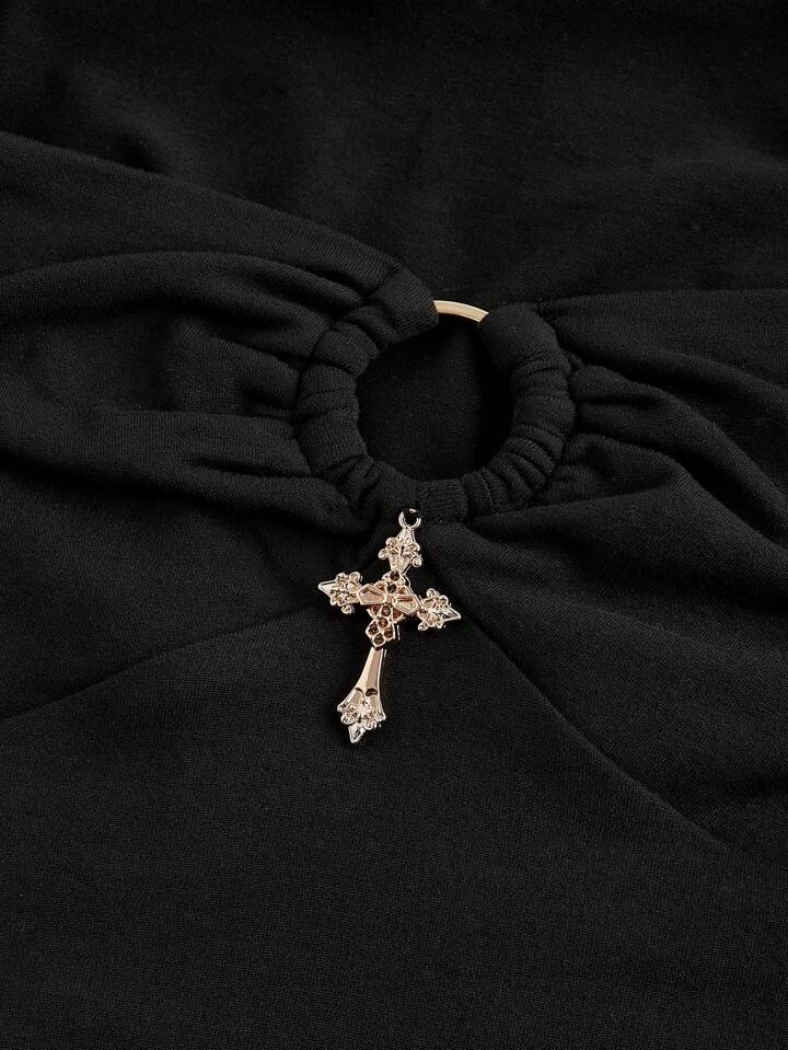 Grunge Punk Vintage Y2K-Inspired Golden Cross Print Fitted Women T-Shirt