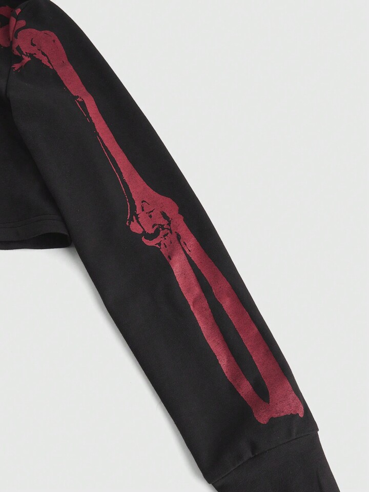 Grunge Punk Women Dark Gothic Skull Print Cropped Sweatshirt