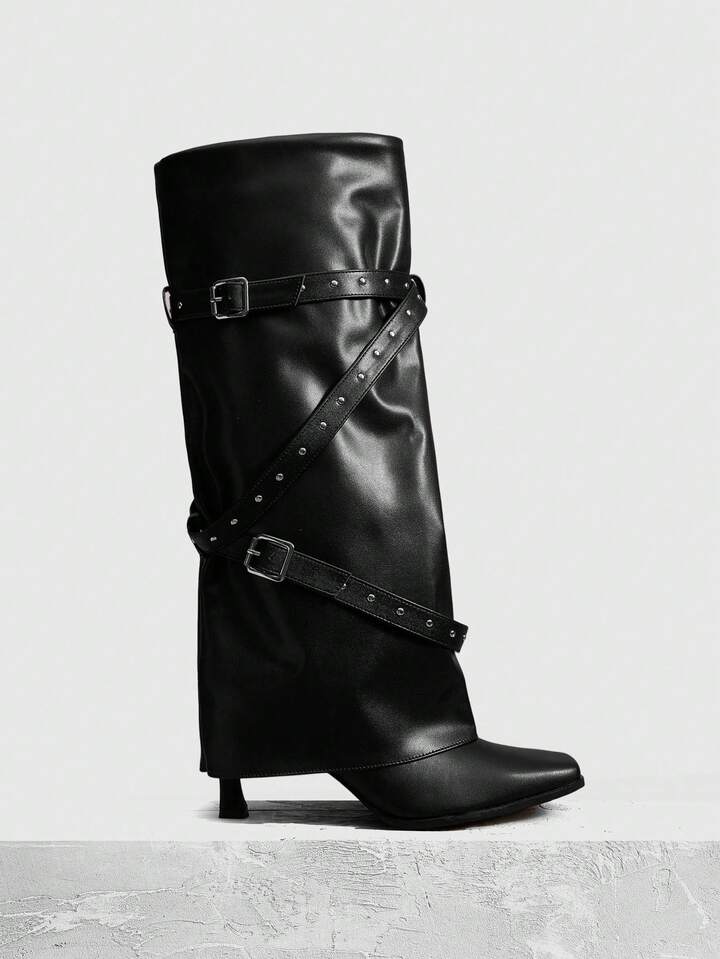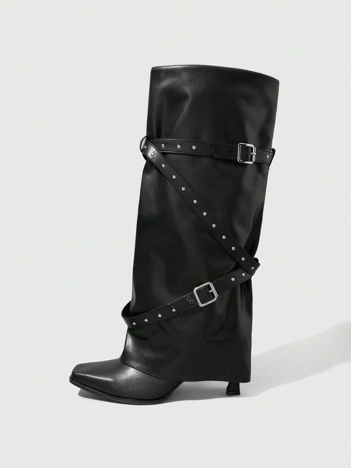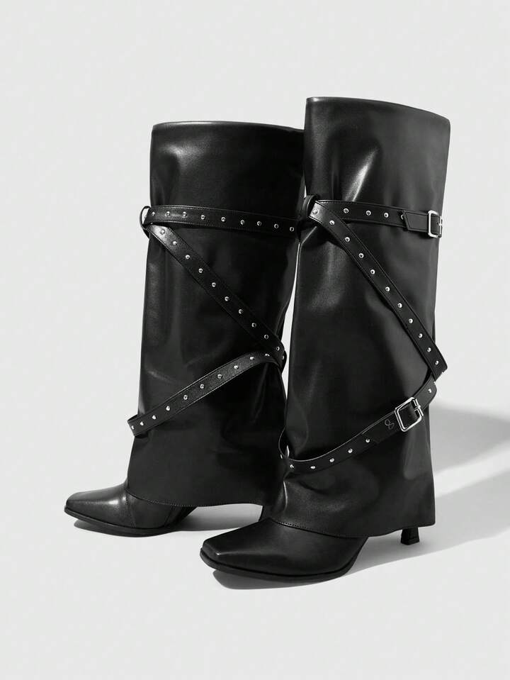 Grunge Punk Women's Criss-Cross Studded Pointed Toe Ankle Boots