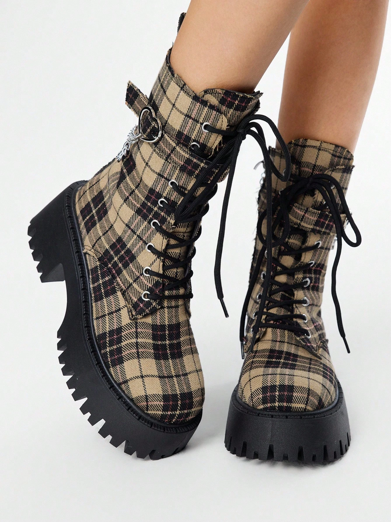 Grunge Punk Women's Dark Punk Gothic Lace-Up Motorcycle Boots, Platform Ankle Boots And Short Boots