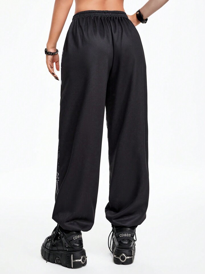 Grunge Punk Women's Digital Printing Cross, Skull, And Vine Element Sweatpants