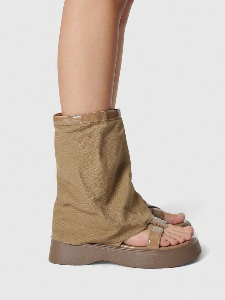Grunge Punk Women's Gothic Style Open Toe Summer Sandals, Canvas Wedge Platform Roman Beach Boots, Rock Punk Shoes, Halloween