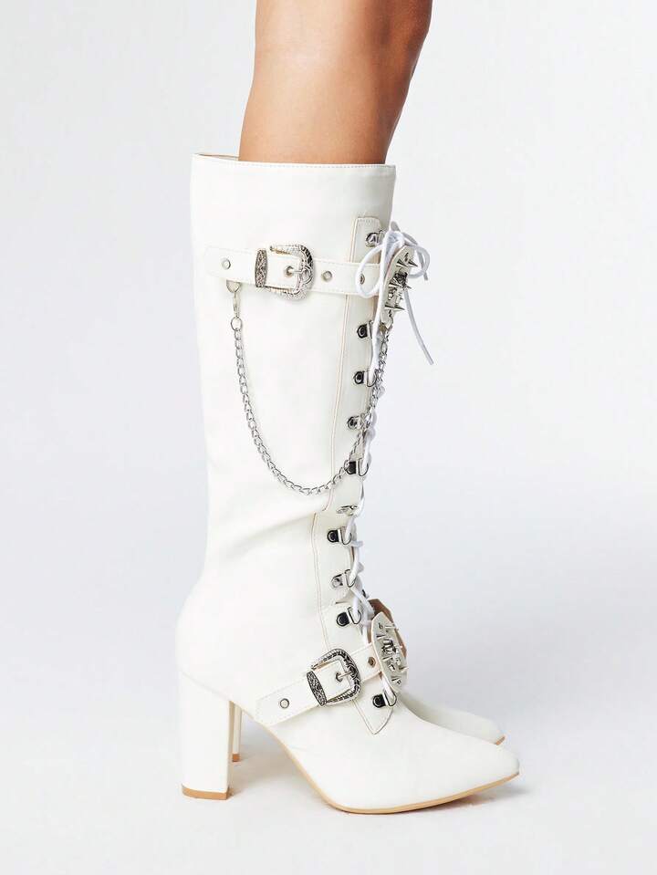 Grunge Punk Women's High Heel Boots, Versatile Elegant Pointed Toe Fashion PU Thick Heel Boots, Autumn/Winter