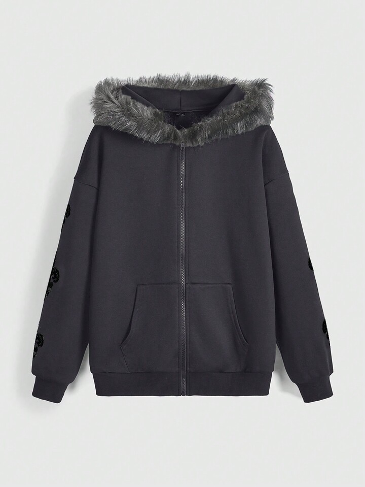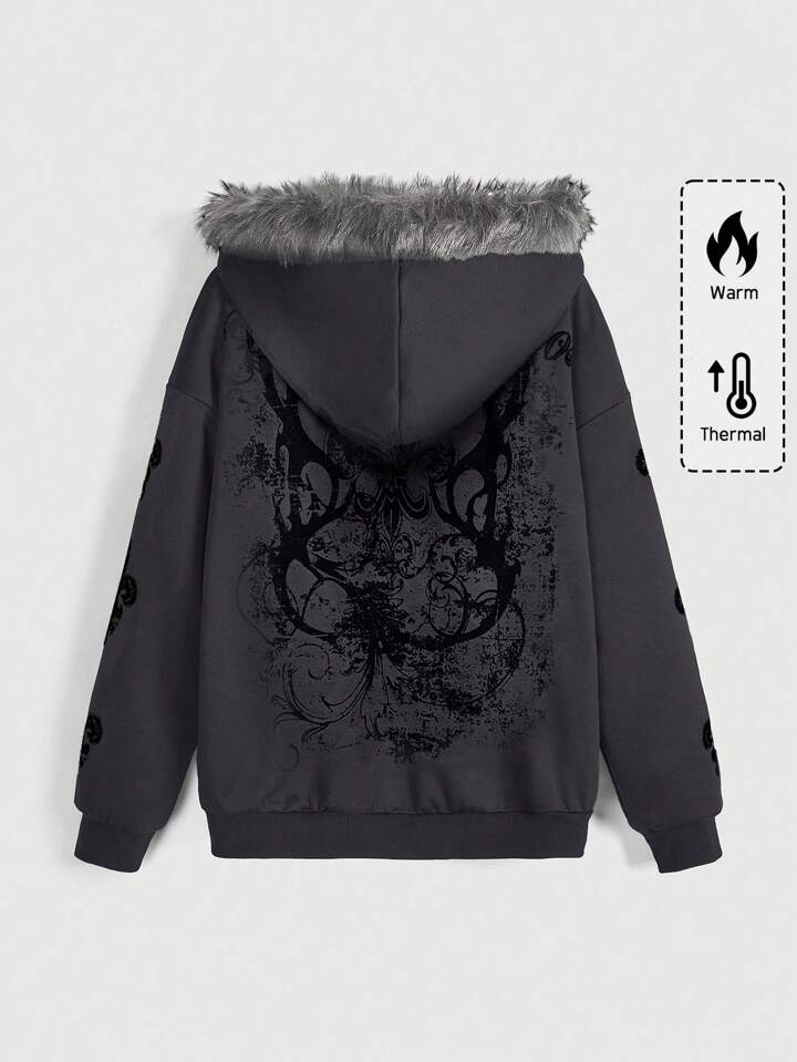 Grunge Punk Women's Oversized Grunge Style Distressed Print Open Front Hoodie Sweatshirt
