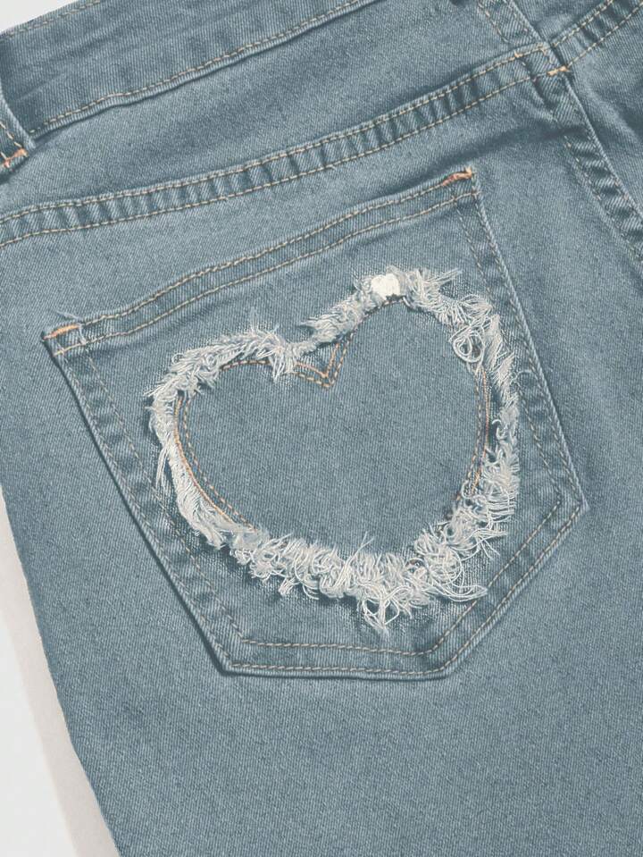 Grunge Punk Women's Patchwork Fringe Crisscross Denim Flare Jeans