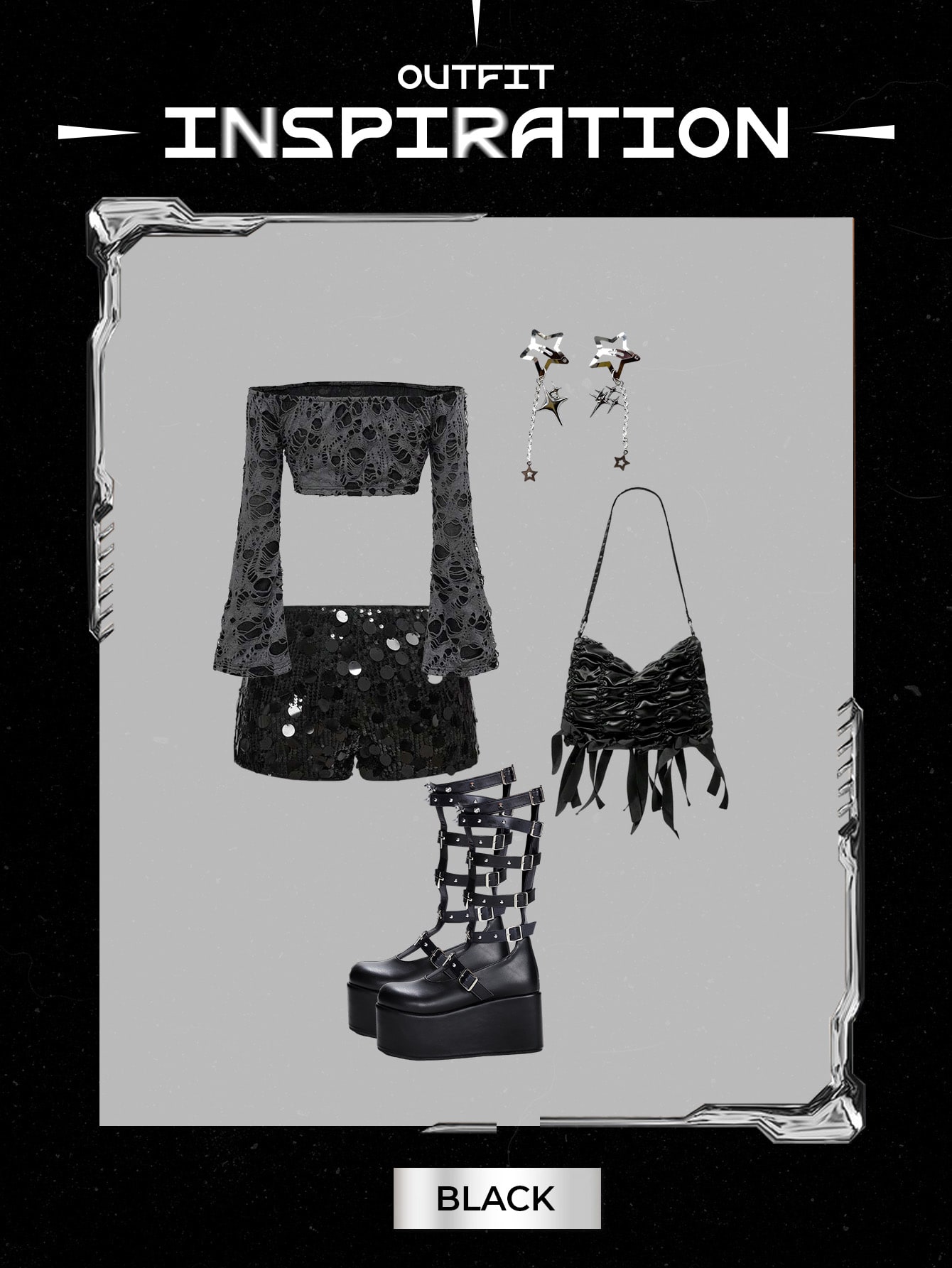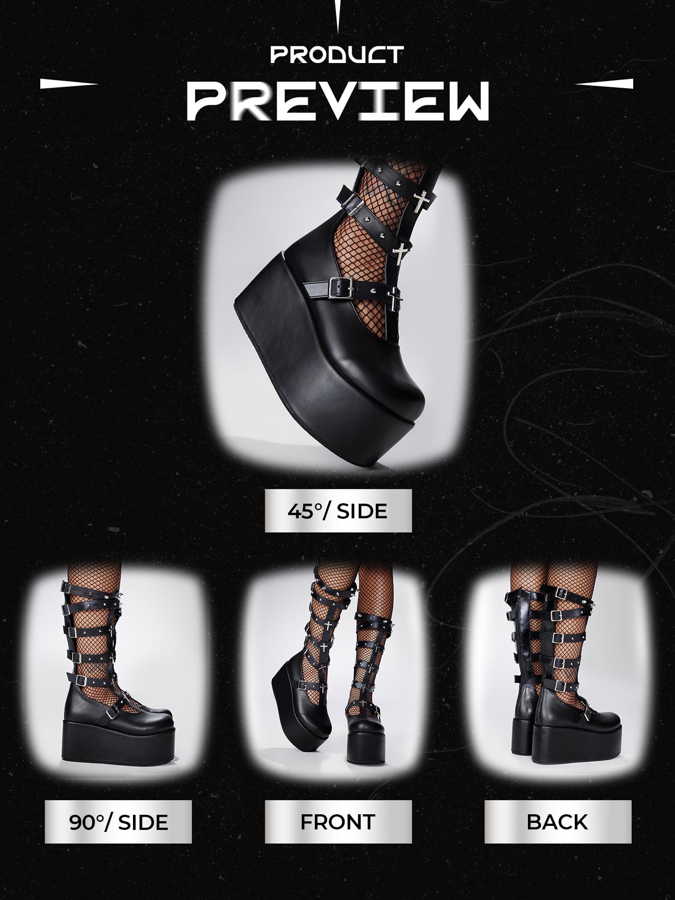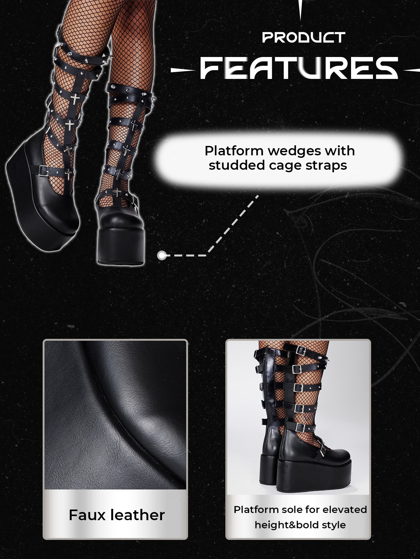 Grunge Punk Women's Platform Mid-Calf Boots, Punk Style With Studs & Cross Detail, Black Faux Leather