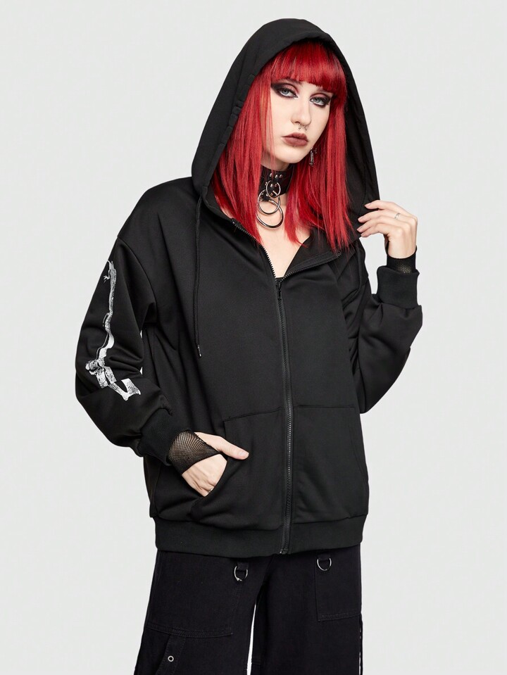 Grunge Punk Women's Skeleton Print Hoodie