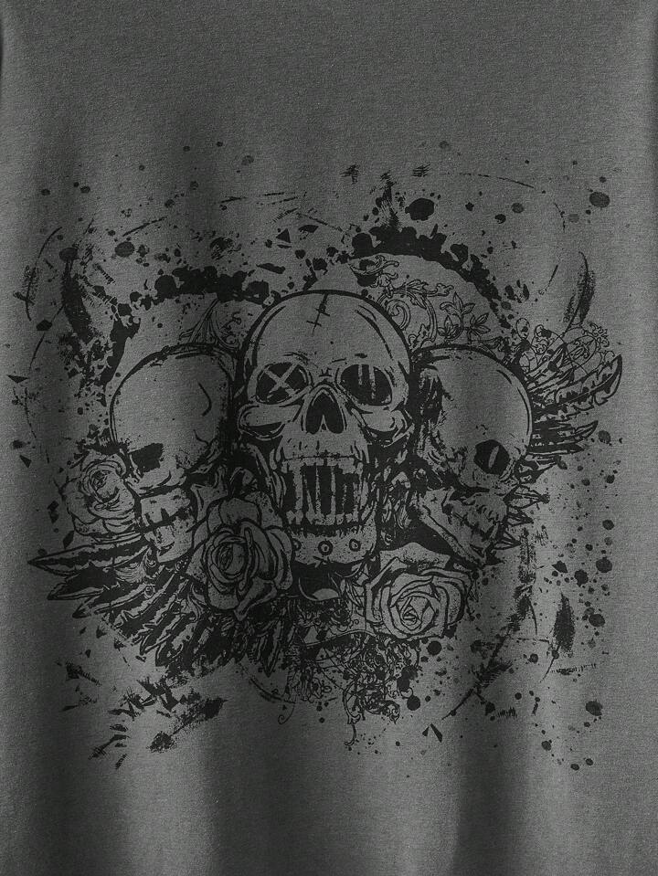 Grunge Punk Women's Skull Printed 2 In 1 T-Shirt, School