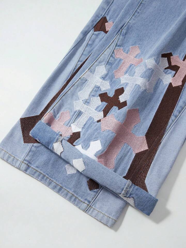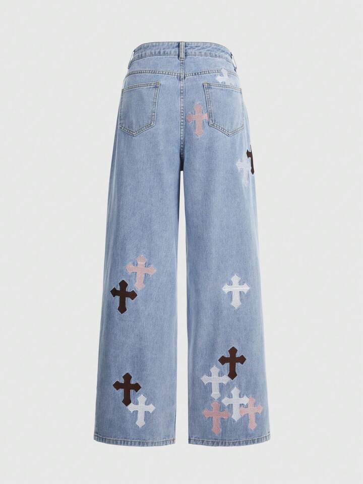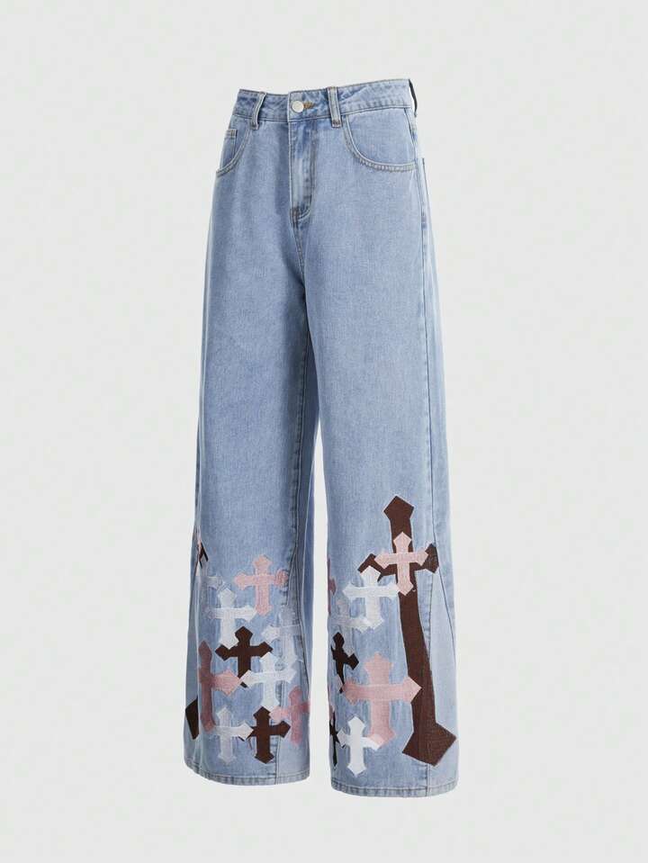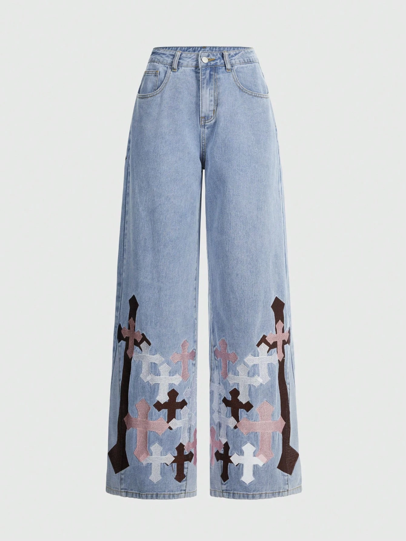 Grunge Punk Women's Super Low Waist Loose Patchwork Cross Straight Leg Jeans