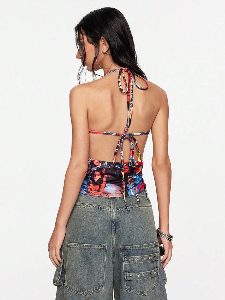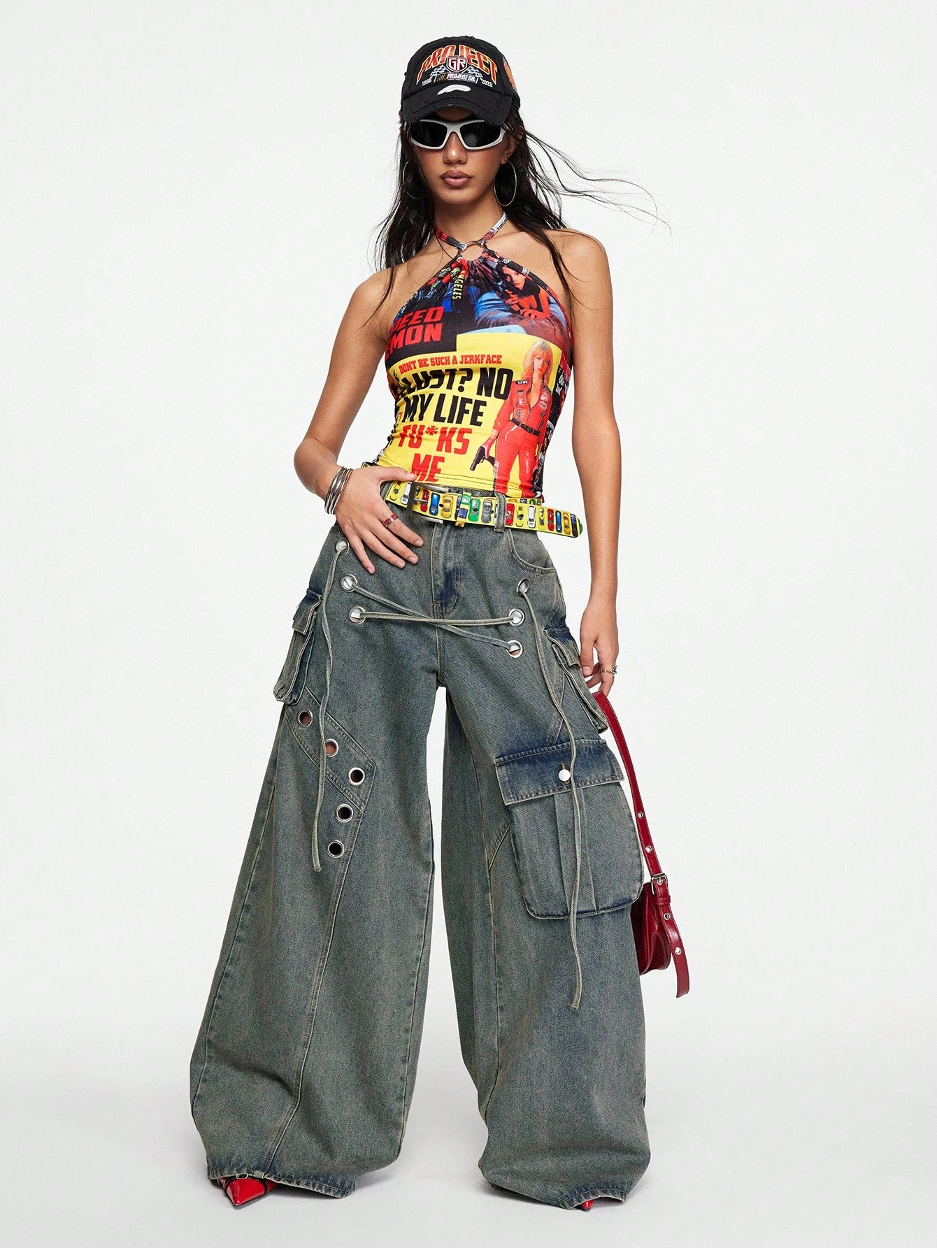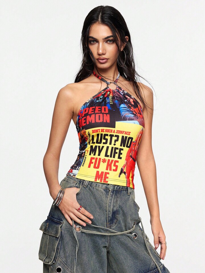 Grunge Punk Women's Y2K Retro Sexy Poster Print Halter Neck Camisole