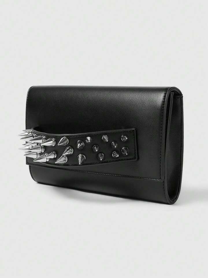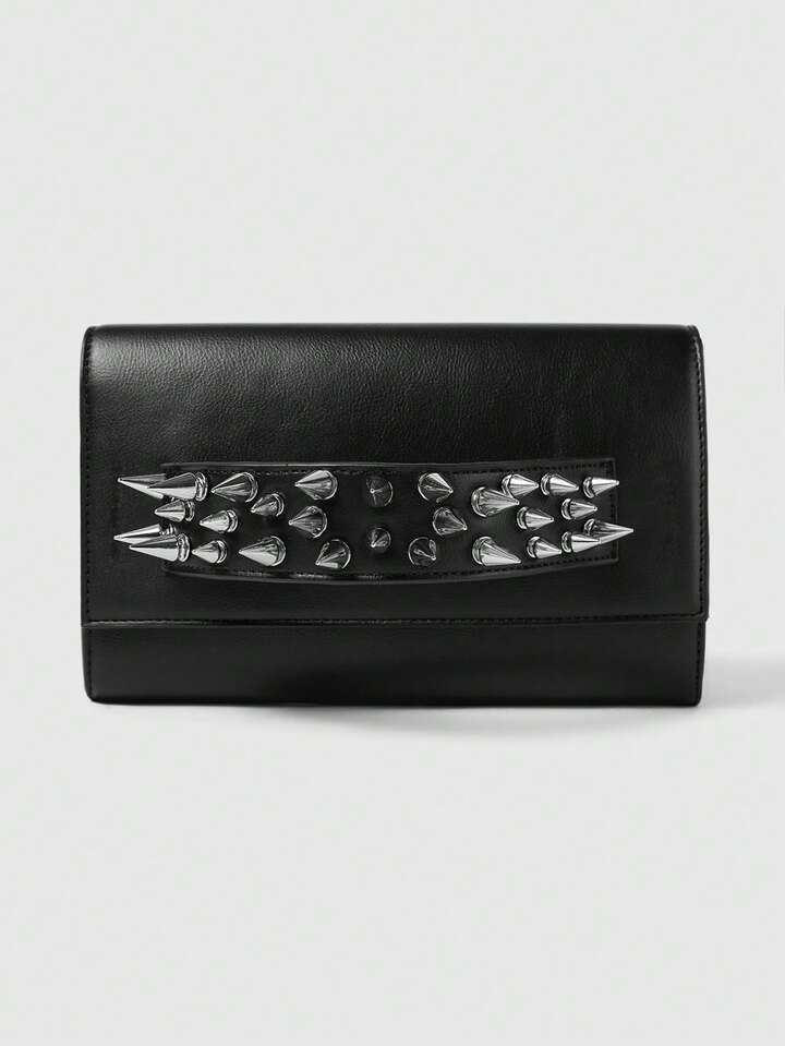Grunge Punk Y2K Baddie Rivet Decor Soft Leather Casual Clutch Bag, Fashion Versatile Shoulder/Crossbody Bag For Women, Subculture Goth Style, Black