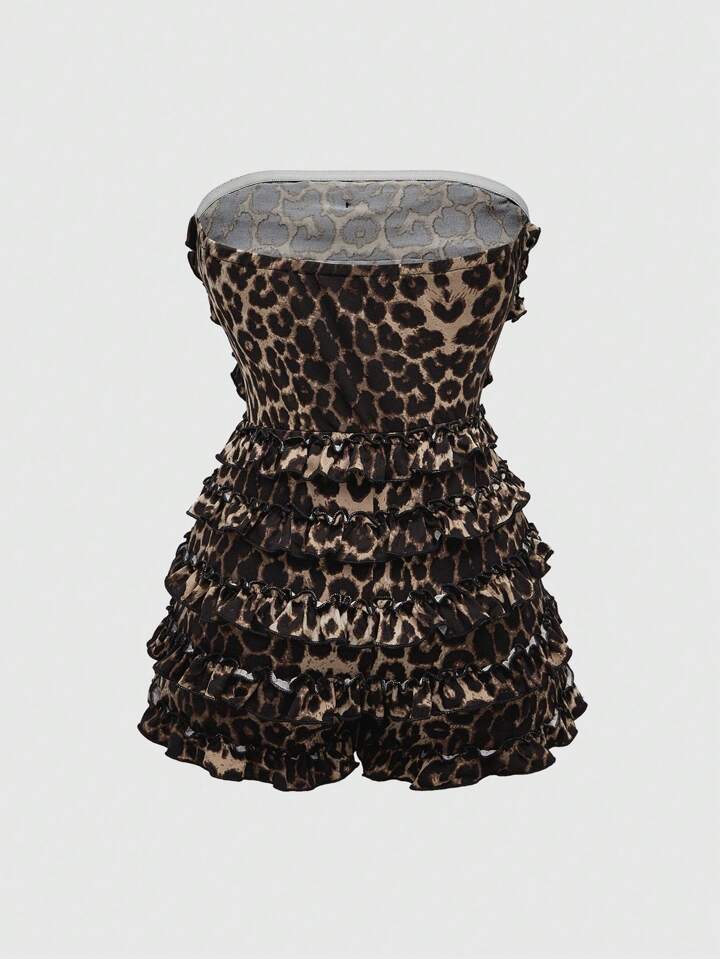 Grunge Punk Y2K Harajuku Style Leopard Print Ruffle Trim Layered Cake Mini Rompers For Women
