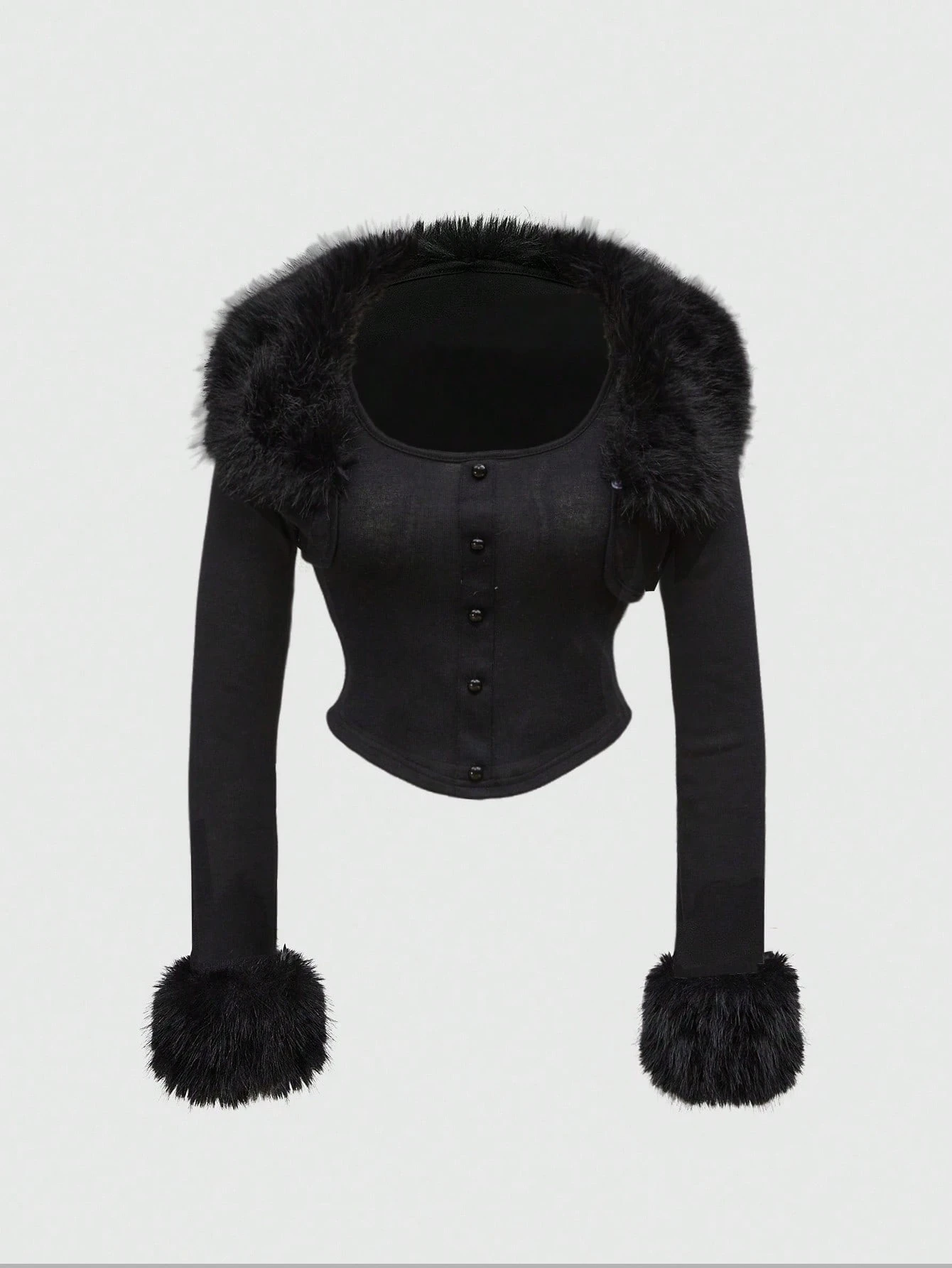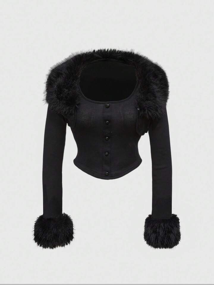 Grunge Punk Y2K Party Clubwear Leopard Print Patchwork Faux Fur Collar Women 2 Pieces Set: Open Front Cropped Top + Camisole