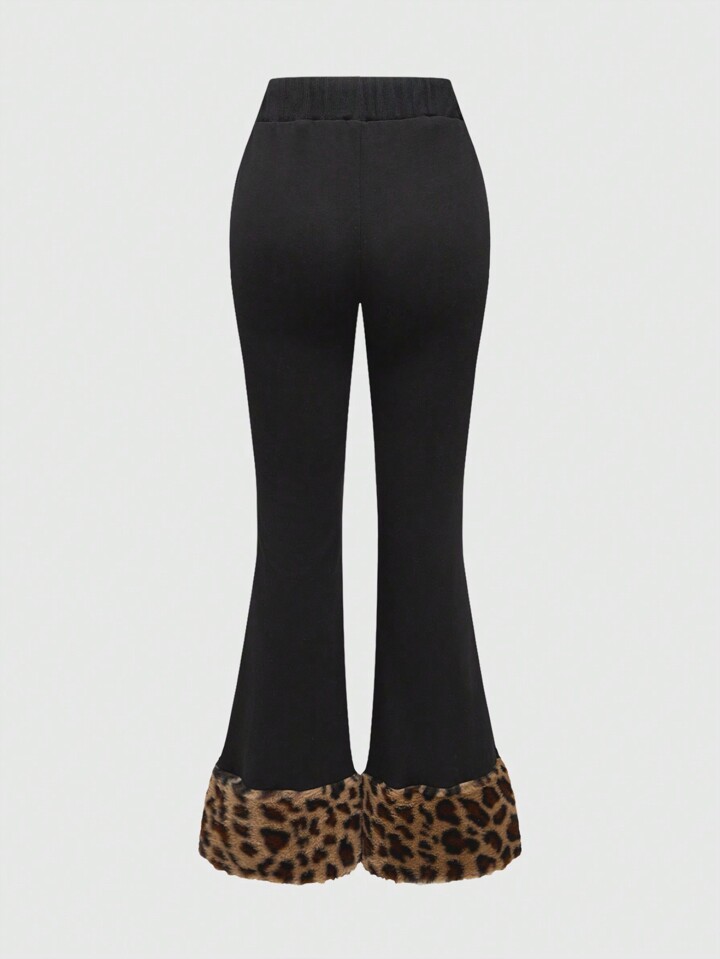 Grunge Punk Y2K Patchwork Leopard Fluffy Women's Low Waist Drawstring Flared Leg Pants