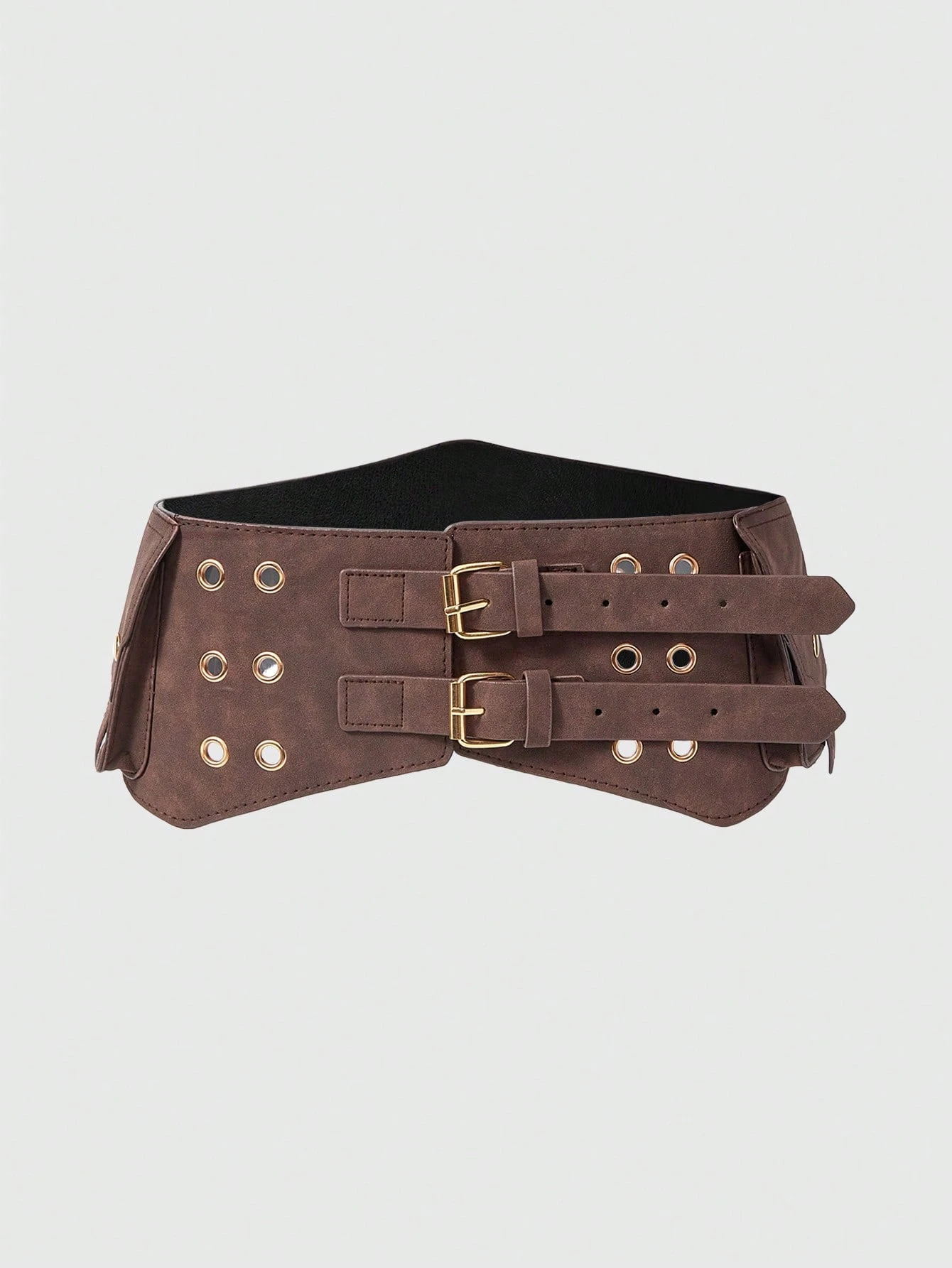 Grunge Punk Y2K Punk Style Black Metal Rivet Eye Multi-Pocket Adjustable Metal Buckle Fanny Pack For Women