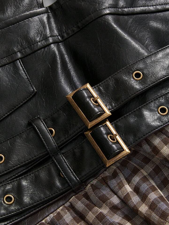 Grunge Punk Y2K Style Patchwork Plaid Asymmetric Hem Short Dress, Collegiate Vibe