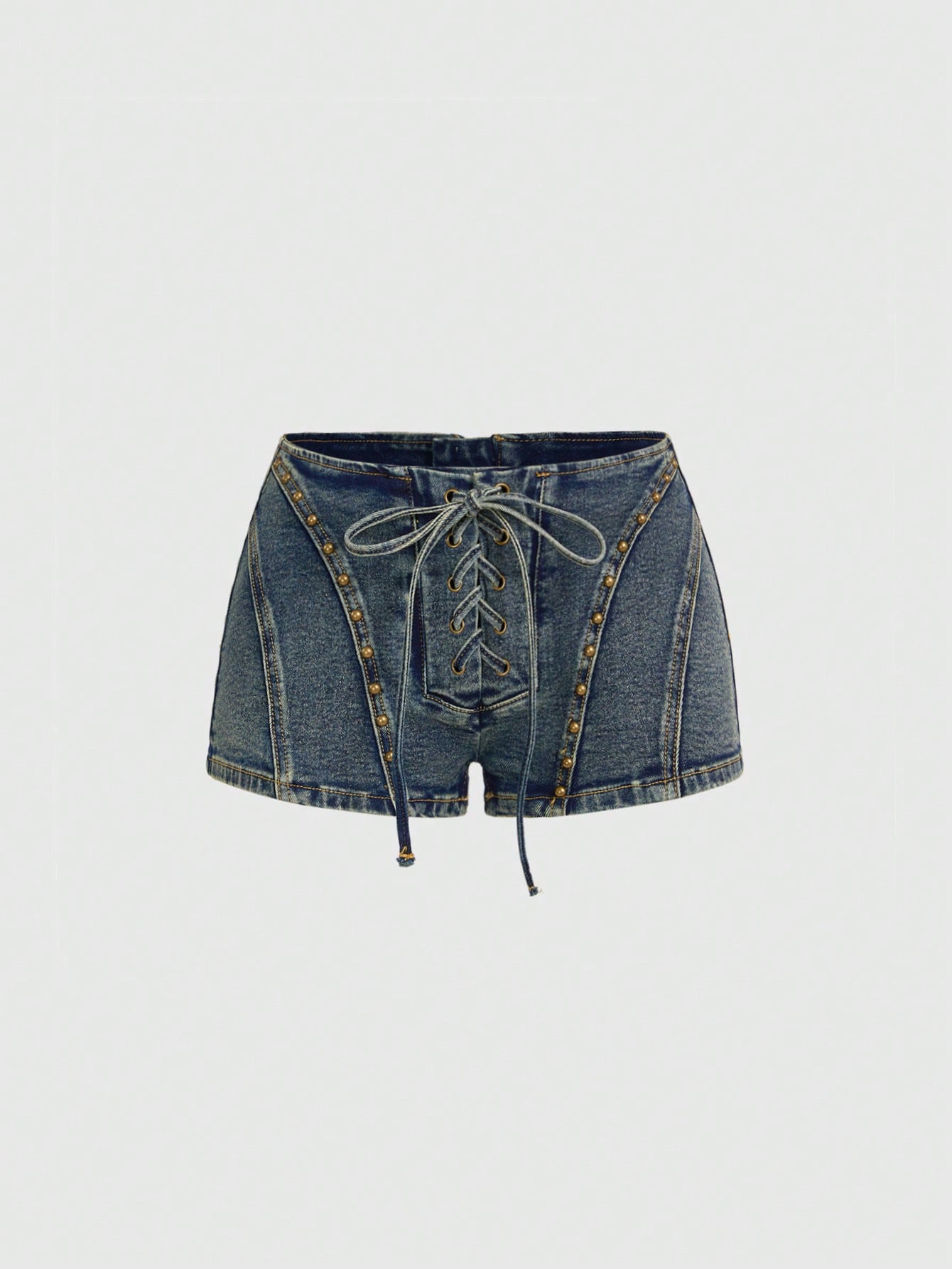 Grunge Punk Y2K Ultra Low Waist Sexy Rhinestone Rivet Crop Denim Shorts
