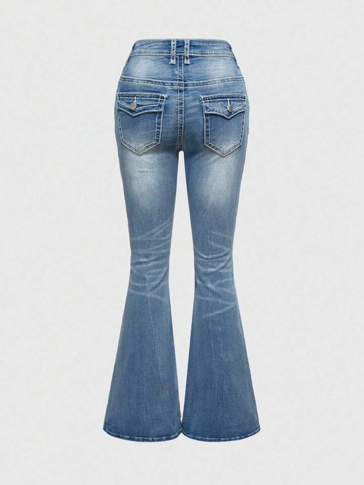 Grunge Punk Y2K Vintage Distressed Extra Low Waist Flare Leg Jeans