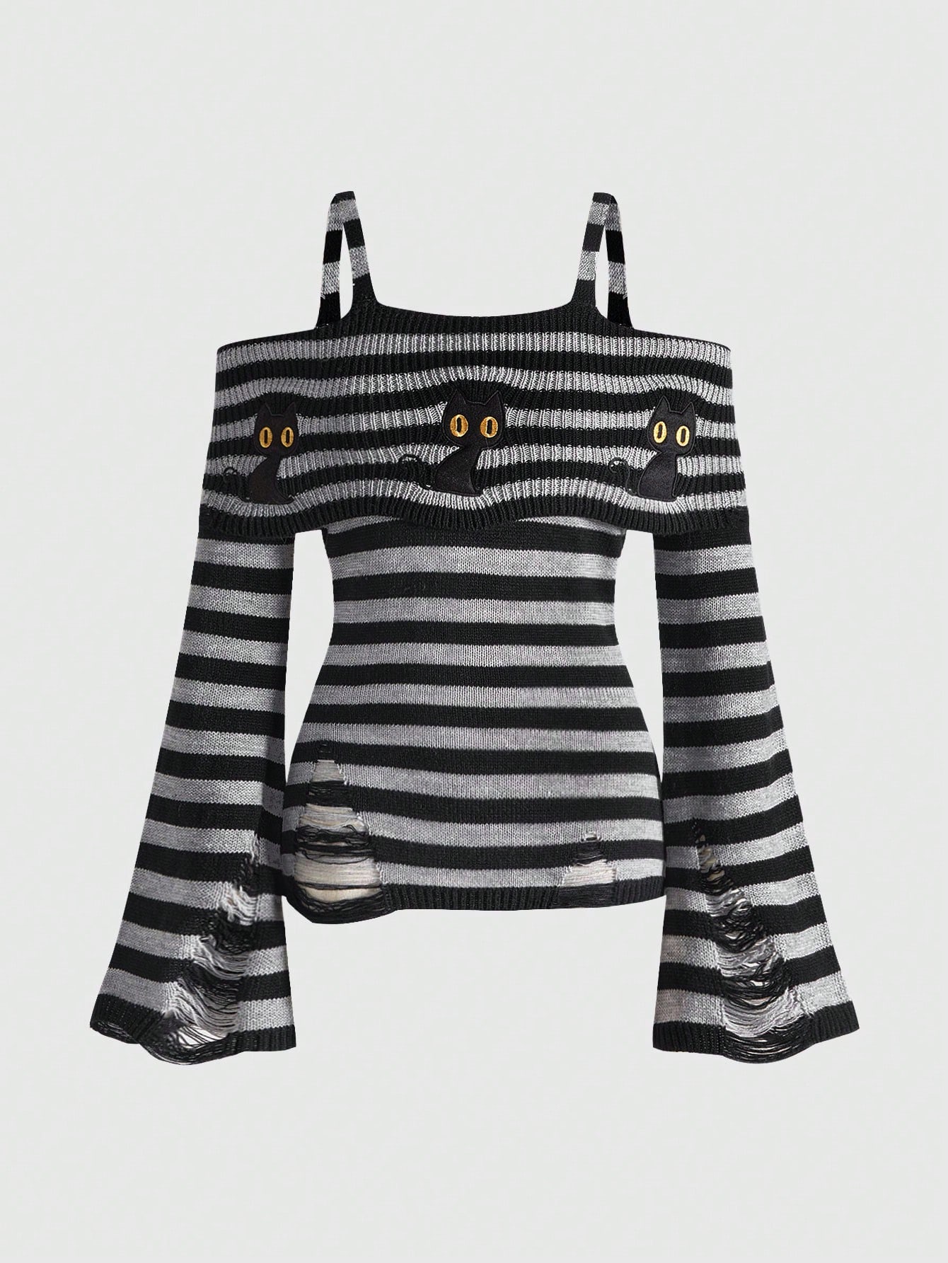 Grunge Punk Grunge Style Vintage Striped Fitted Women Sweater