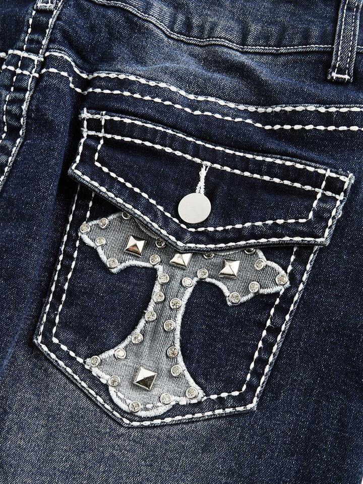 Grunge Vintage Low Waist Contrast Color Cross Rhinestone Embellished Women's Denim Skirt